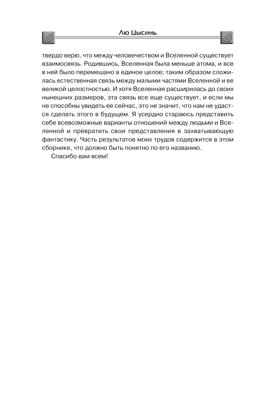 Эти истории появились в течении двух последних десятилетий серьезных перемен в Китае и позволяют перенестись во времени и пространстве, дают шанс увидеть мир глазами одного из самых дальновидных писателей-фантастов. Испытайте безграничную и чистую радость творчества и воображения Лю Цысиня в этой потрясающей коллекции рассказов.