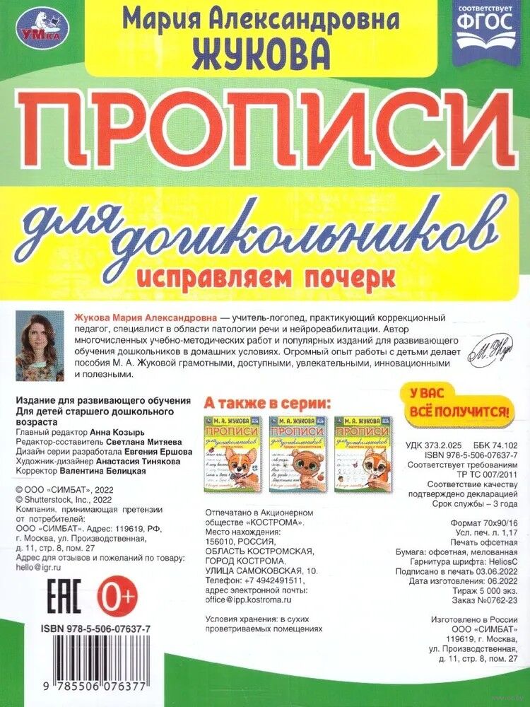 Прописи для дошкольников "М. А. Жукова. Исправляем почерк" – это настоящий тренажёр по чистописанию: