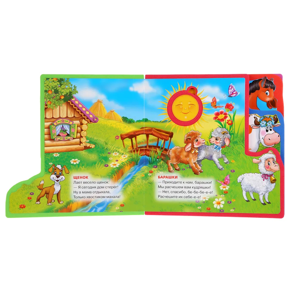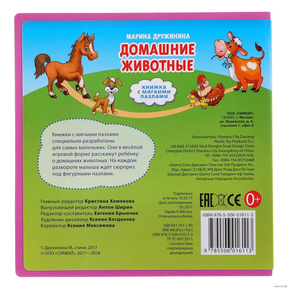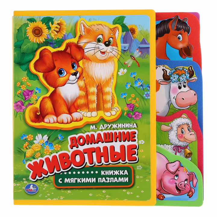 Открыв книжку-игрушку, ребенок обнаружит на каждом развороте мягкую вставку-пазл, под которой спрятан сюрприз. Каждая страница оформлена фигурными закладками с изображением животных.
