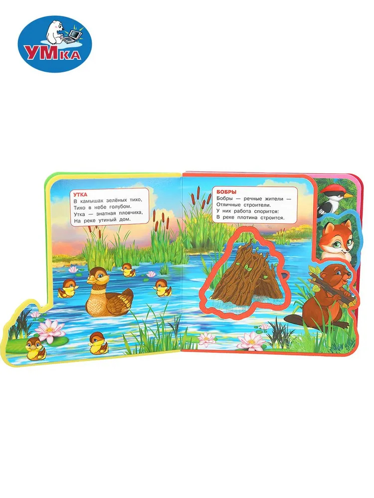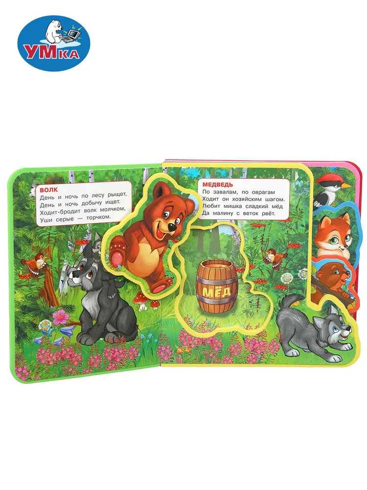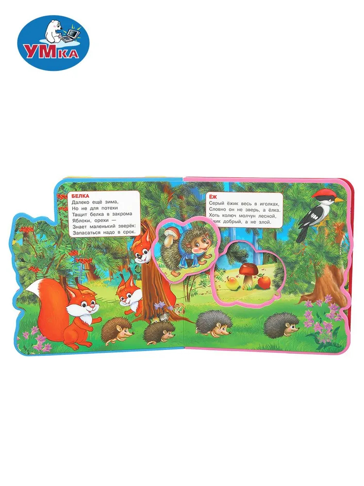 Оригинально оформленная книжка с фигурной вырубкой, яркими страницами и мягким обрамлением обязательно заинтересует маленького любознайку. Ребёнок с удовольствием будет листать книгу с помощью специальных закладок и играть с 5 пазлами-вставками, извлекая их из страниц и помещая обратно. Благодаря компактному формату книжку удобно брать с собой в дорогу.