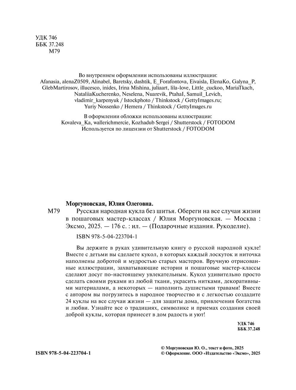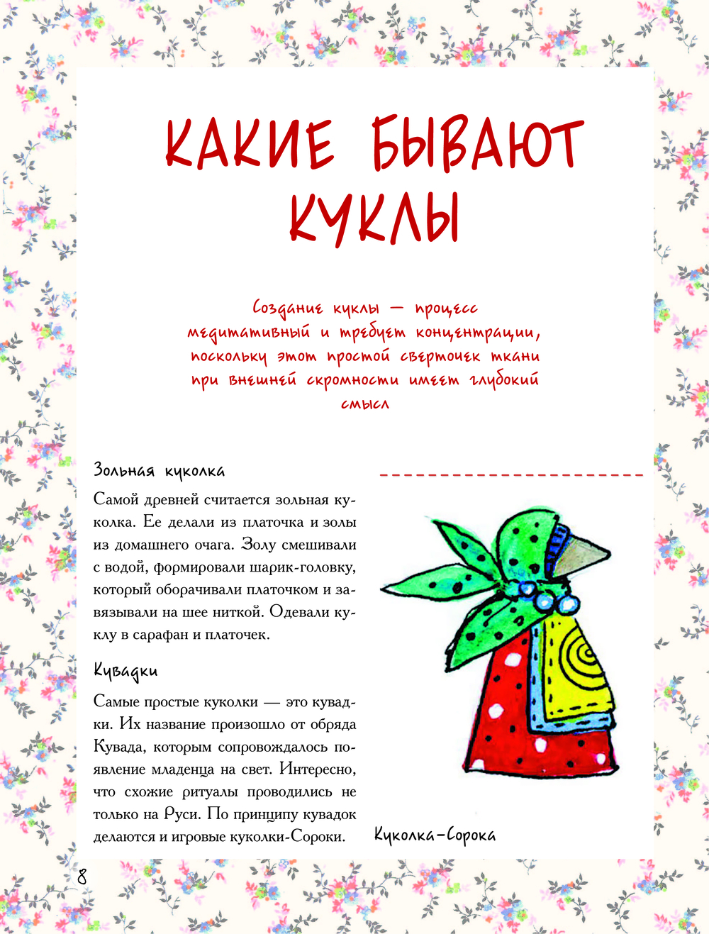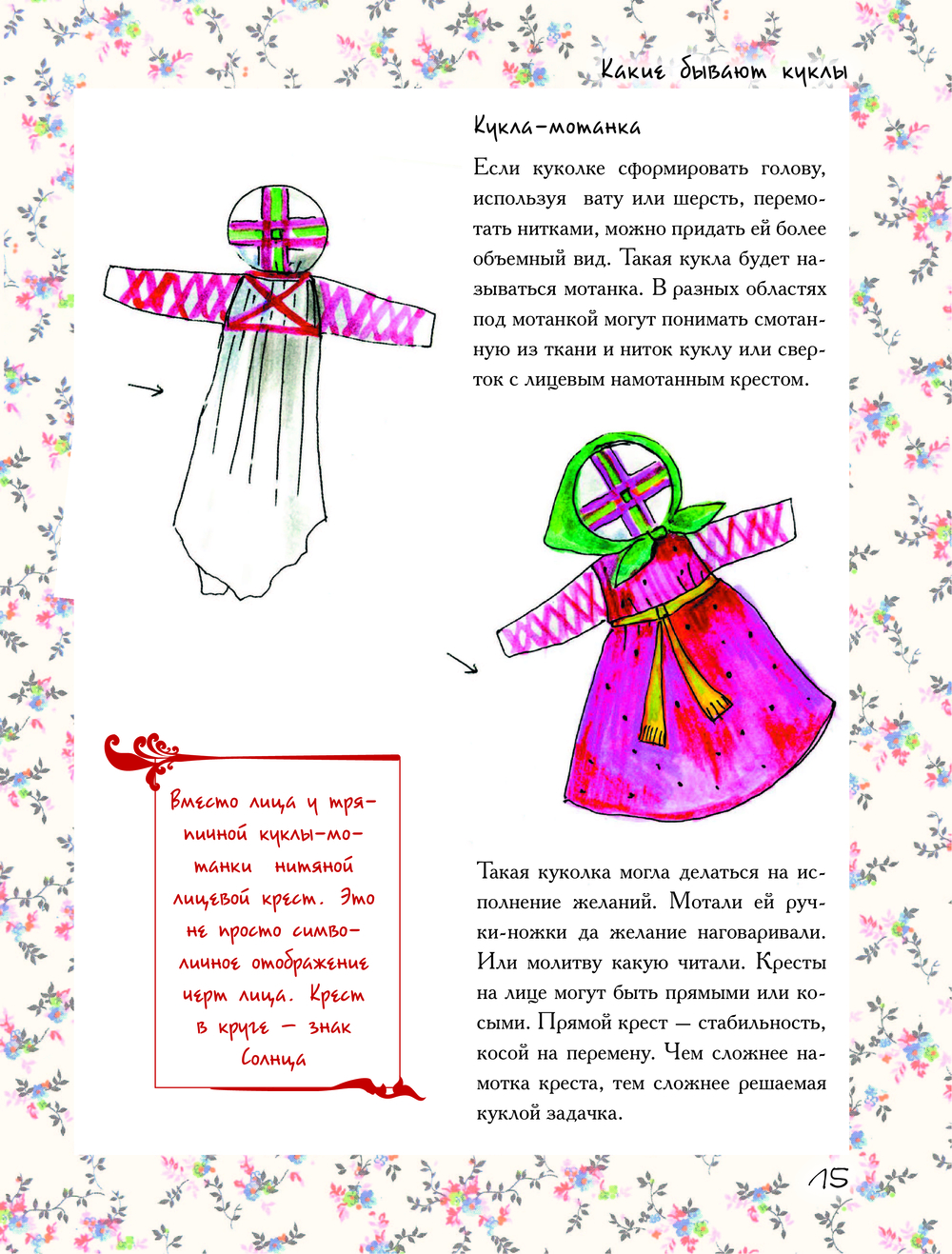 Эта удивительная книга – настоящий проводник в мир народного творчества! Вместе со своими детьми вы легко сделаете 24 добрые обережные куклы по традициям наших предков, узнаете уникальную историю талисманов, приносящих в дом добро и мудрость. Вручную отрисованные иллюстрации, подробные инструкции и пошаговые мастер-классы сделают досуг по-настоящему увлекательным! Берите любую ткань, нитки и украшения и создавайте своих кукол на все случаи жизни!