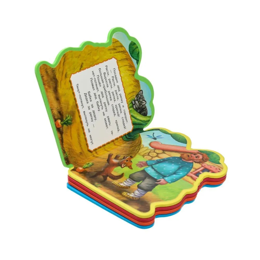 Необычный дизайн книги с фигурной вырубкой обязательно привлечет внимание ребёнка. Благодаря форме, мягким страничкам, известной русской народной сказке в обработке Алексея Николаевича Толстого и ярким картинкам эта книжка обязательно станет любимой игрушкой малыша.