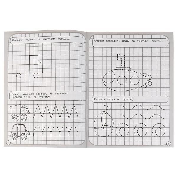 В данной тетради маленького любознайку ждут интересные задания на рисование по клеточкам. В результате должны получиться изображения различных транспортных средств, которые можно будет раскрасить. Прописи помогут ребёнку научиться ориентироваться на листе бумаги, соотносить образец со своим рисунком, а также развить графомоторные навыки. Благодаря компактному размеру тетрадь можно взять с собой в дорогу.