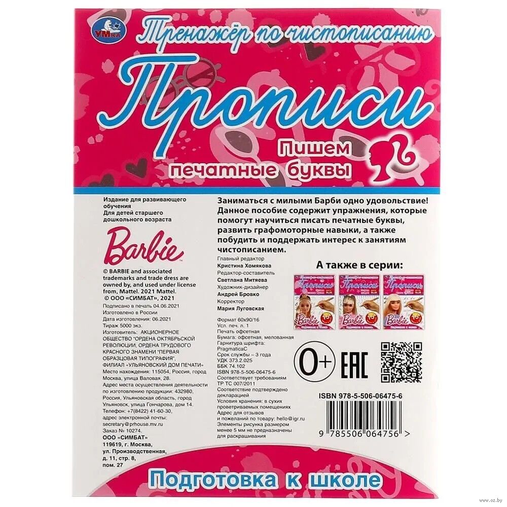 Прописи "Барби. Пишем печатные буквы" – настоящий тренажёр по чистописанию: