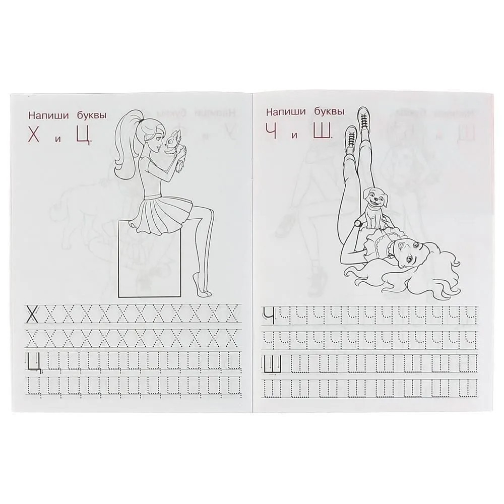 Маленькая принцесса будет рада повстречаться на страницах этой занимательной книжки с любимыми куклами Барби. В такой компании она с удовольствием будет тренироваться в написании печатных букв, повторять алфавит, а также раскрашивать красивые картинки с чётким контуром. Для достижения эффективных результатов в чистописании достаточно заниматься с детьми по 15 минут в день – главное, поддерживать их интерес и хвалить за успехи.
