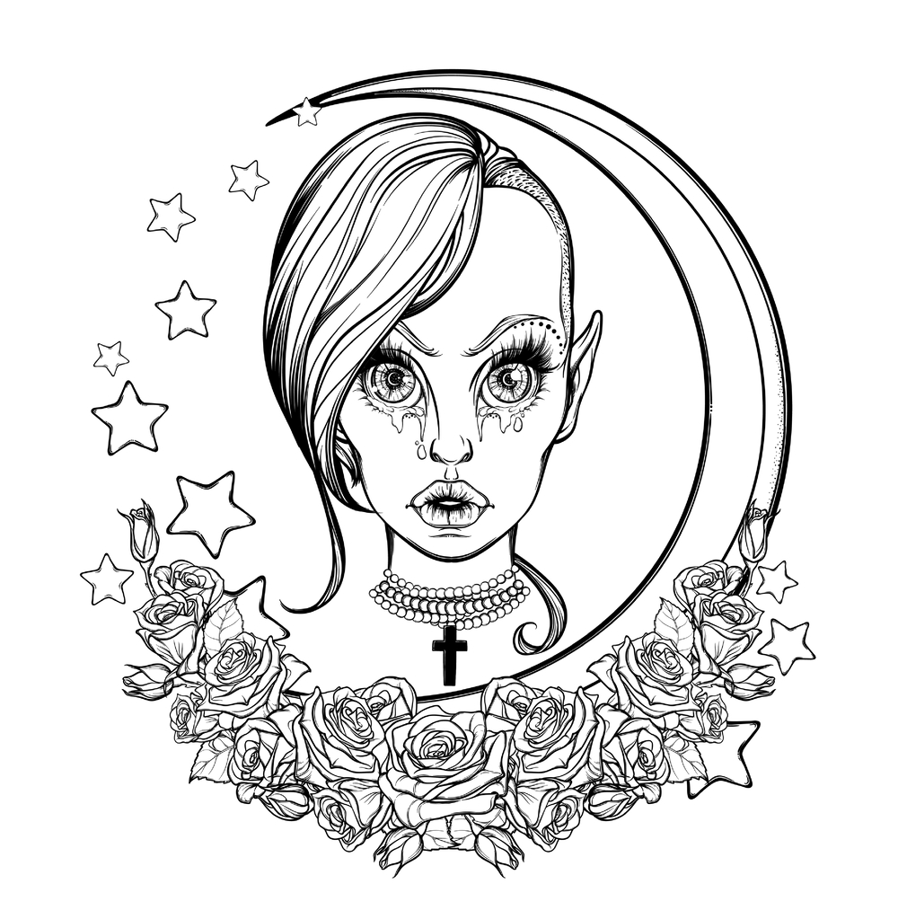 Все рисунки односторонние, поэтому раскрашивать их можно, не боясь испортить картину на обороте. Не бойтесь быть креативными! Раскраска также станет отличным подарком поклонникам готической тематики и любителям раскрасок-антистресс.