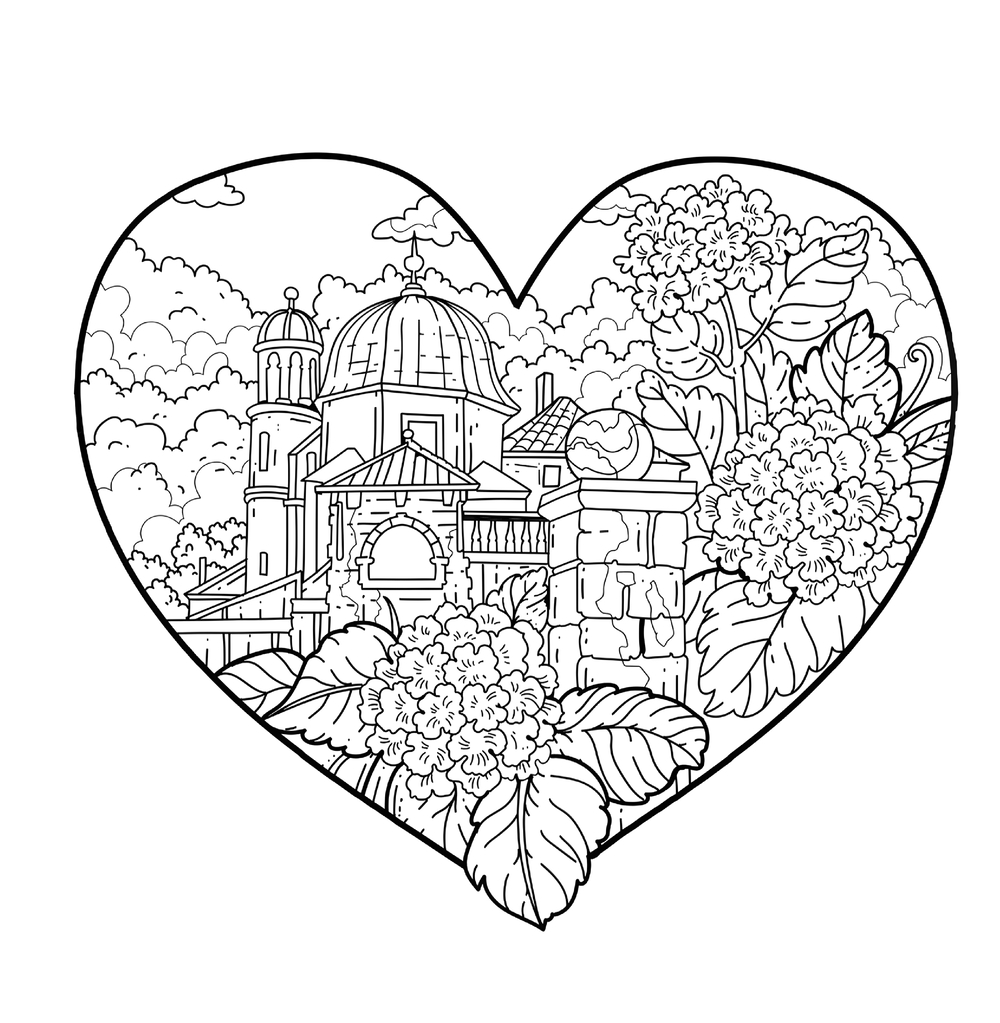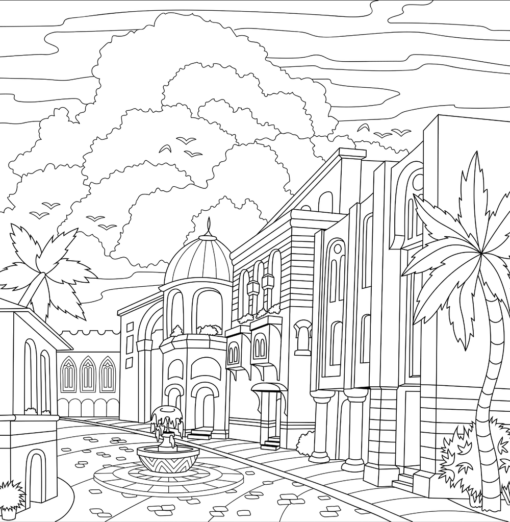 Гармония города. Атмосфера уютных улиц. Раскраска