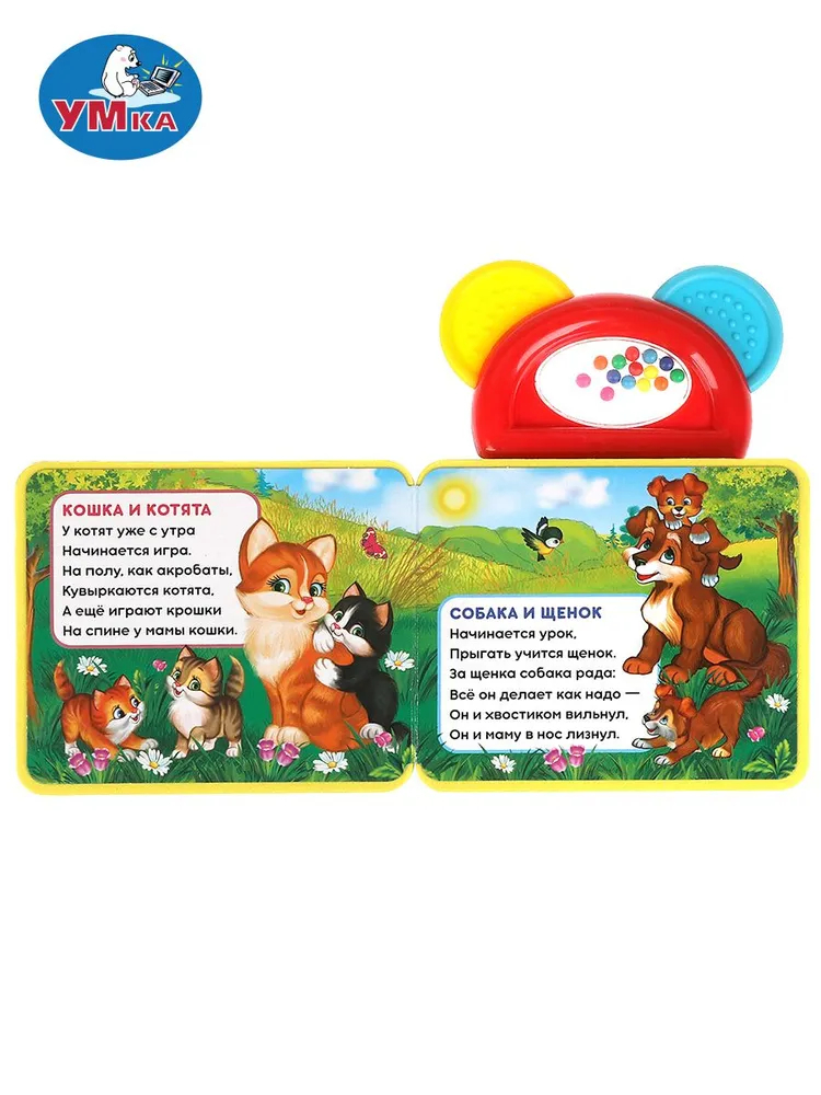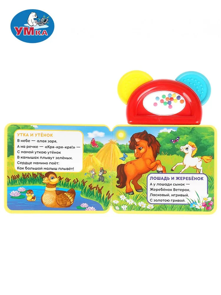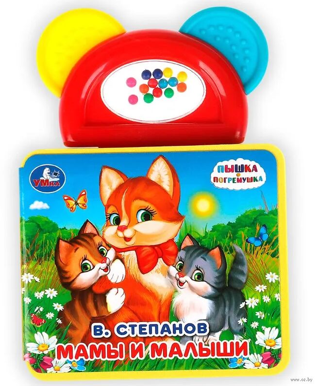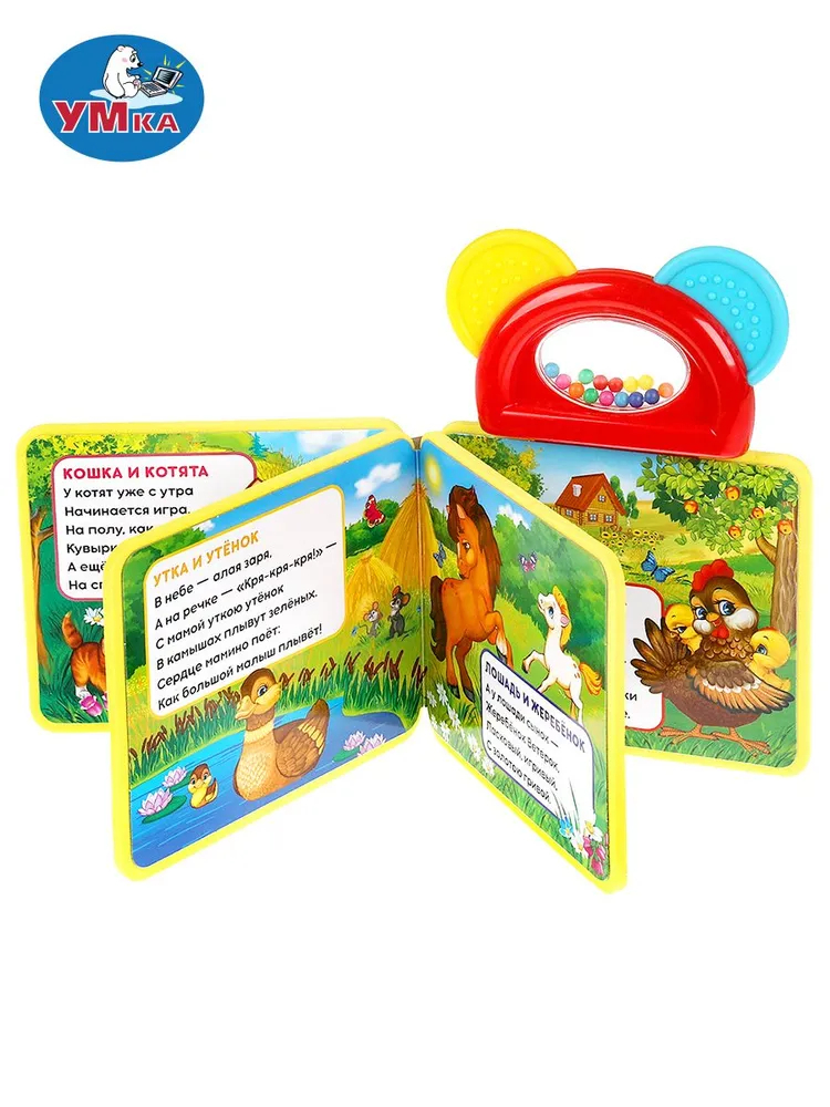 Яркий необычный дизайн обязательно привлечет внимание ребёнка. В прозрачном корпусе погремушки свободно катаются миниатюрные шарики, которые весело гремят. Странички книжки мягкие и приятные на ощупь. Стихи Владимира Степанова сопровождают крупные красочные иллюстрации. Забавные стишки-потешки полезно читать даже новорождённым, которые очень хорошо реагируют на ласковый голос мамы и поглаживания, привыкая к речи.