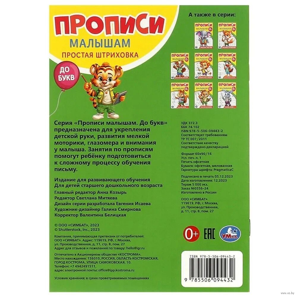 Данная серия предназначена для укрепления детской руки и развития мелкой моторики. Занятия по прописям помогут дошкольнику подготовиться к сложному процессу обучения письму.