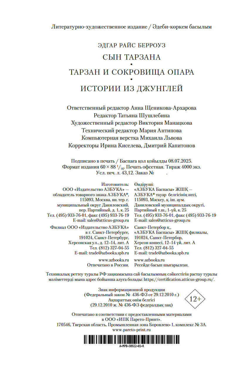 Роман "Сын Тарзана" и сборник рассказов "Истории из джунглей" публикуются в новых переводах.