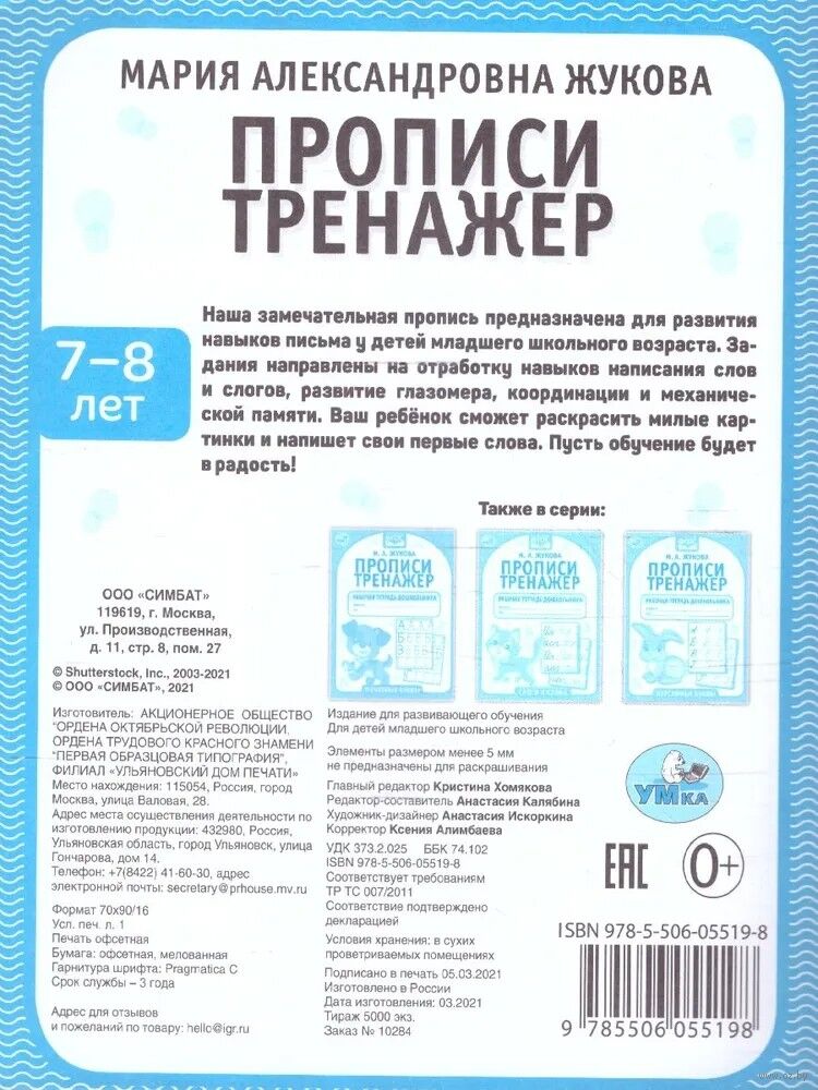 Рабочая тетрадь школьника "М. А. Жукова. Прописи, 7-8 лет" – настоящий тренажёр красивого почерка: