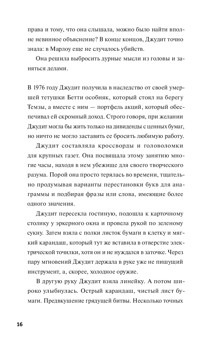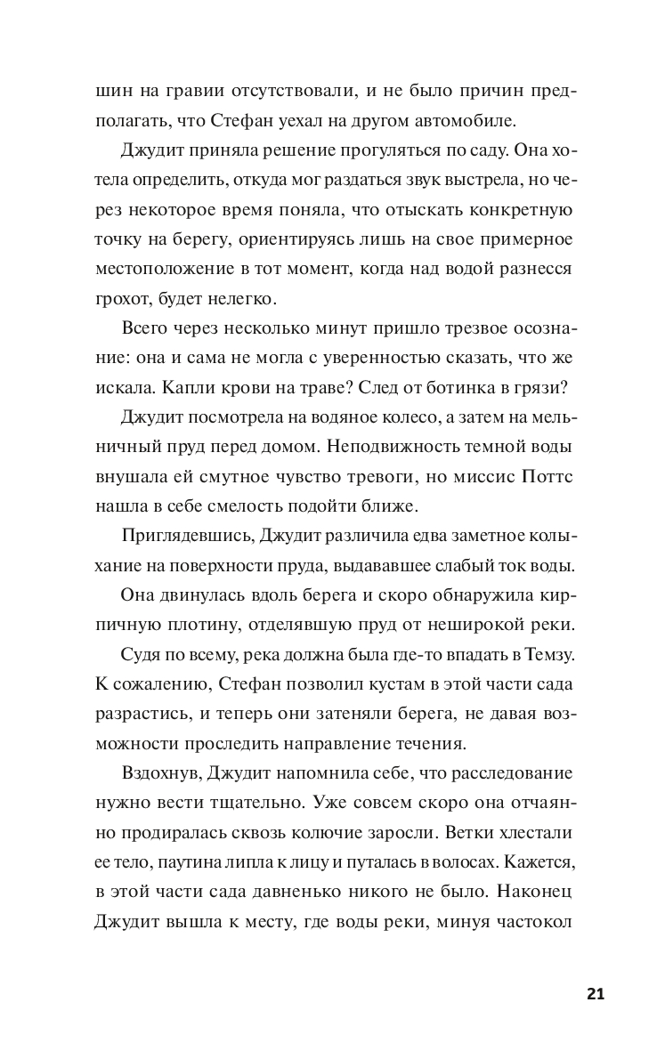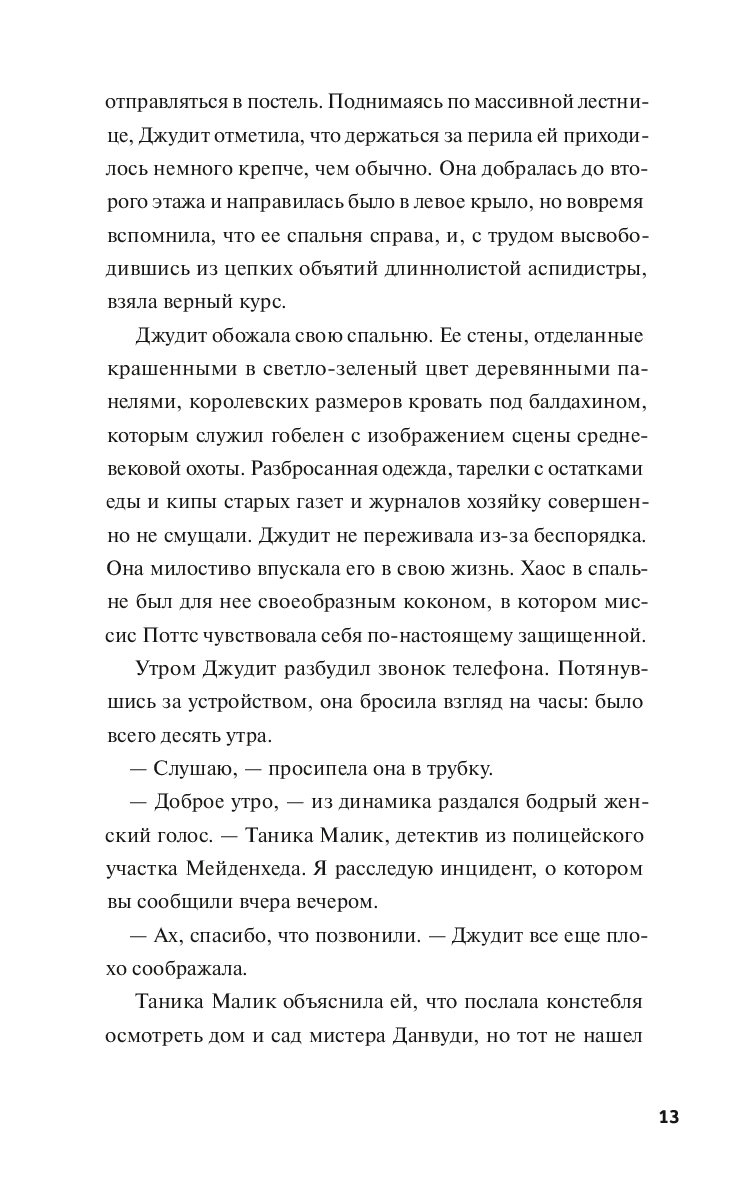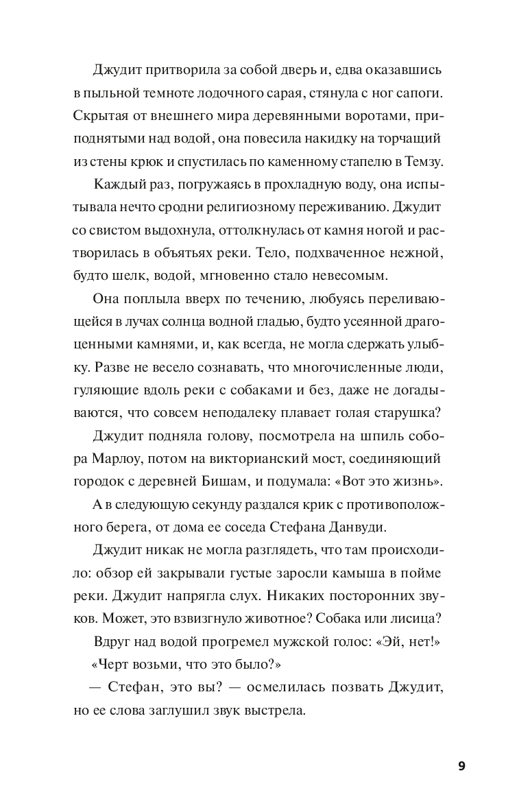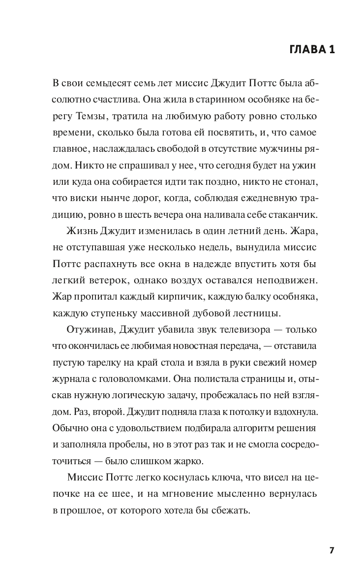Джудит Поттс 77 лет, она составляет кроссворды, купается голой в Темзе и наслаждается свободой и одиночеством. Но она определенно не из тех, кто держится подальше от чужих дел. Когда ее сосед загадочным образом пропадает, а полиция не принимает происшествие всерьез, миссис Поттс решает разобраться в этой истории. К Джудит присоединяются местная собачница Сьюзи и жена священника Бекс.