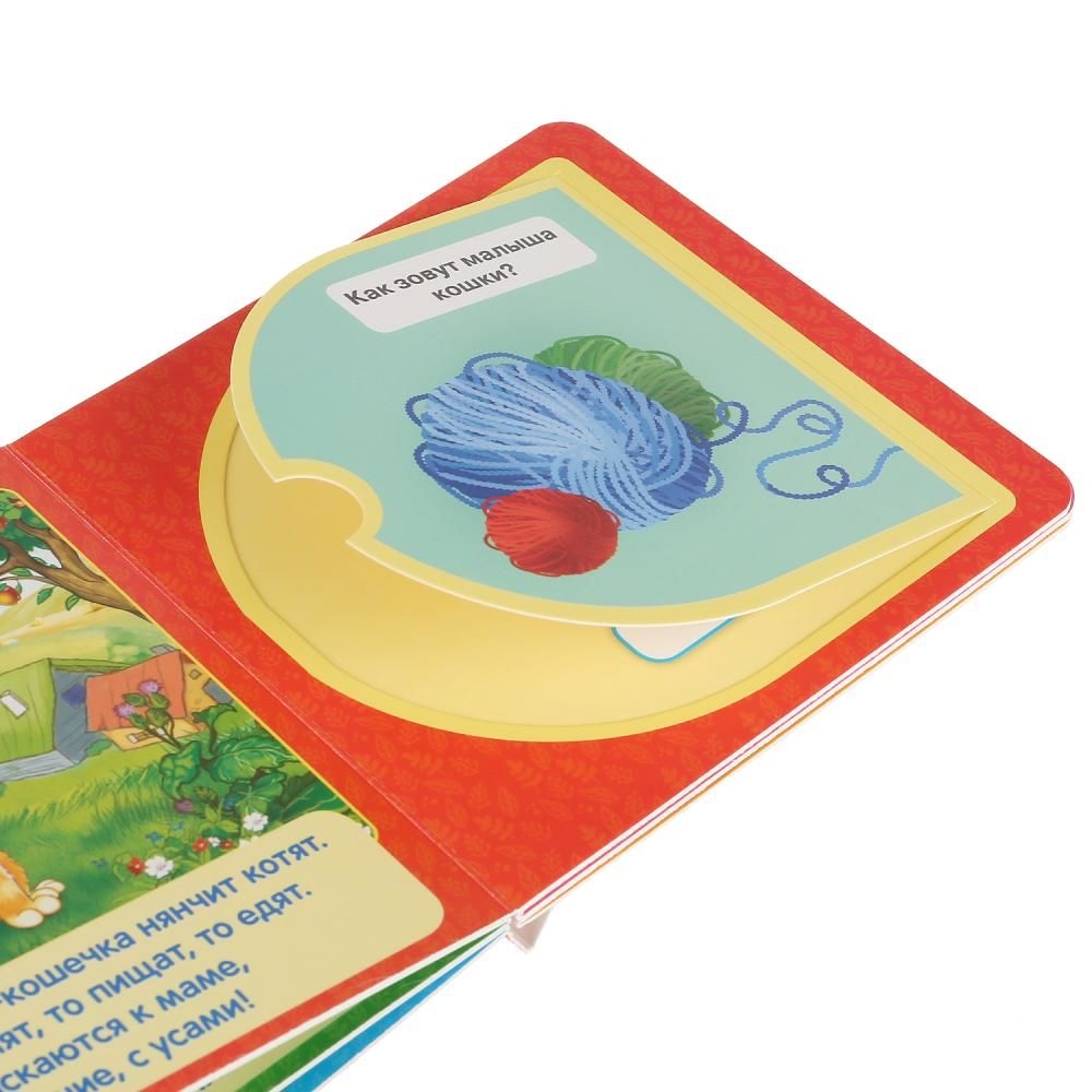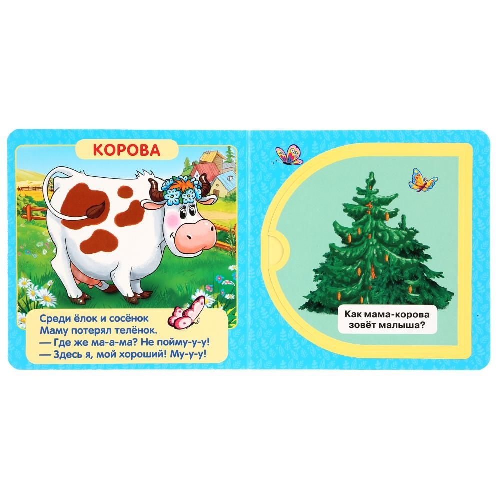 Малыш будет с удовольствием рассматривать яркие страницы, изучать животных и отвечать на вопросы. Подсказки к ответам скрыты за окошками, что превратит чтение в увлекательную игру.