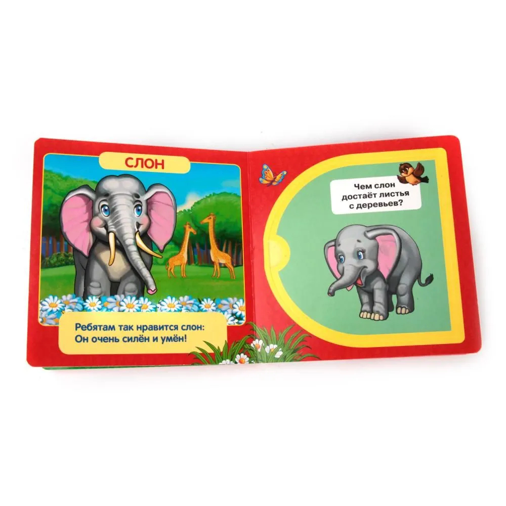 Книжка с окошками "Зоопарк" станет прекрасным развивающим подарком для малыша. Она расскажет про животных в зоопарке и потренирует внимание и логическое мышление детей вопросами. Ответы-картинки ребёнок увидит, открывая потайные окошки. Дети будут в восторге от необычного формата книги, ведь они очень любят сюрпризы и секретики! В книге описаны лев, обезьяна, слон, верблюд, белый медведь. Описания сопровождаются красочными крупными иллюстрациями, которые увлекут даже самых маленьких.