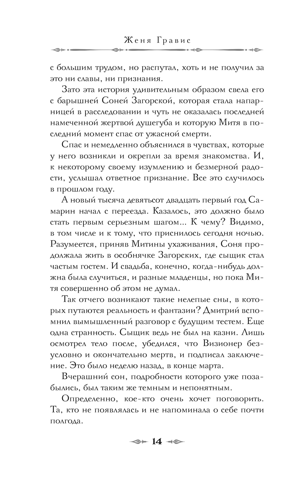 Москва, 1921 год. После тяжелого дела серийного убийцы по прозвищу "Визионер" Дмитрий Самарин надеется на небольшой отдых, но судьба распоряжается иначе. Однажды ночью в старом особнячке на Большой Никитской происходит жестокое убийство. Жертве никто не желал зла, но и на случайное ограбление это не похоже: кто-то как будто мстил ей. Мите предстоит раскрыть новое преступление, а также разобраться с собственными страхами. Ведь за расследованием пристально следит та, перед кем он в неоплатном долгу...