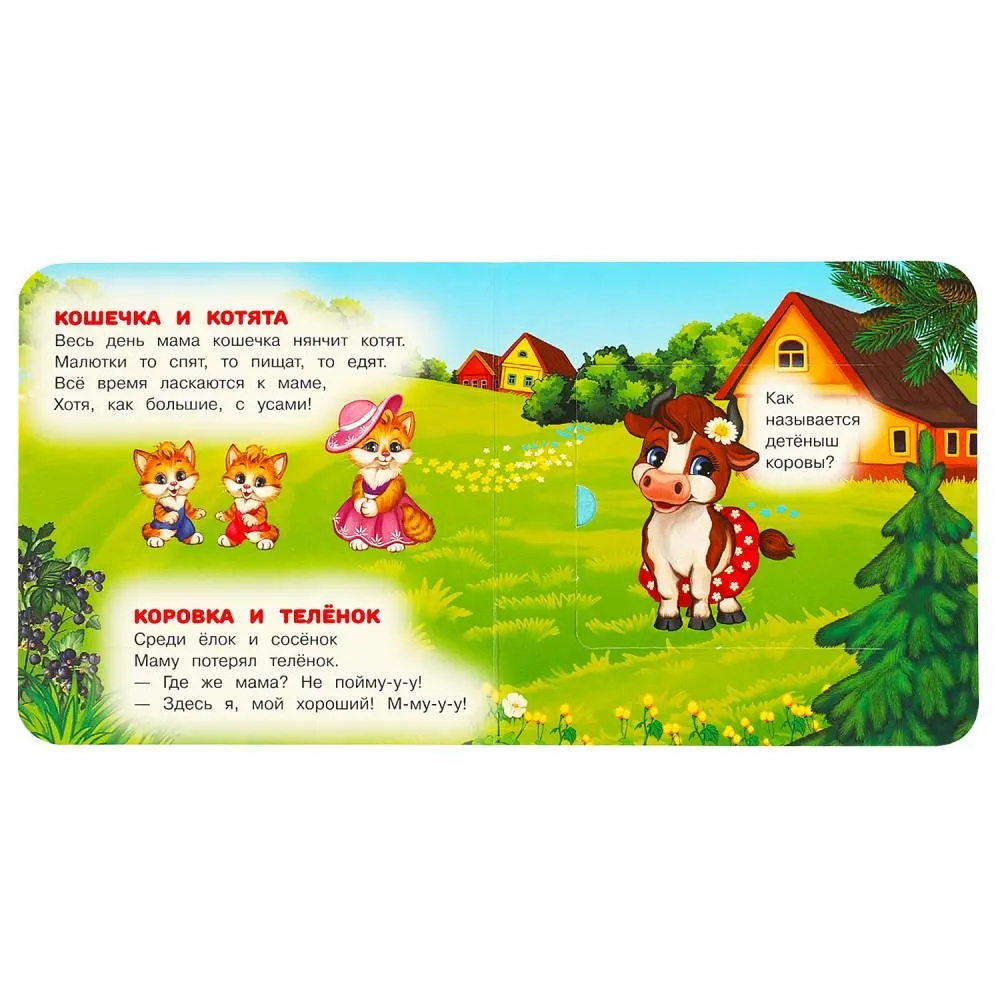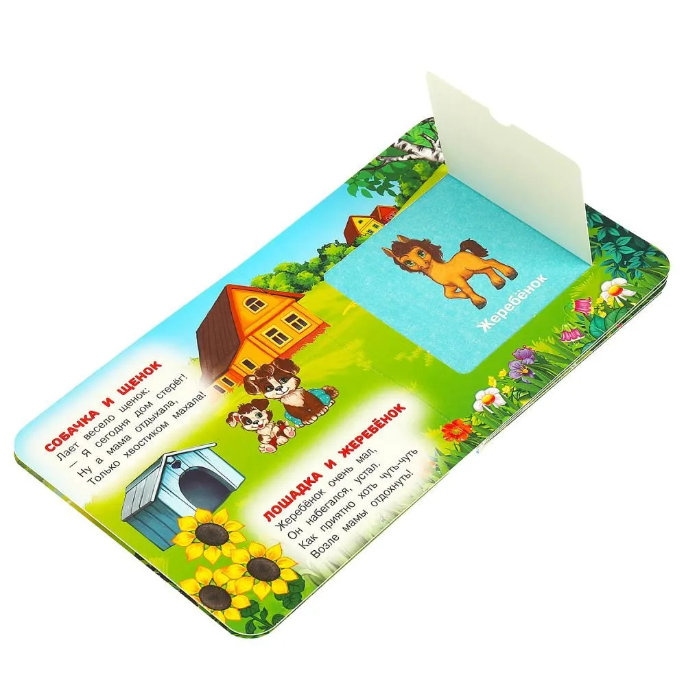 Малыш будет с удовольствием рассматривать яркие страницы, слушать интересные стихи Марины Дружининой о животных, открывать волшебные окошки, чтобы узнать, кто и что за ними прячется. Благодаря удобному формату книгу можно повсюду брать с собой.