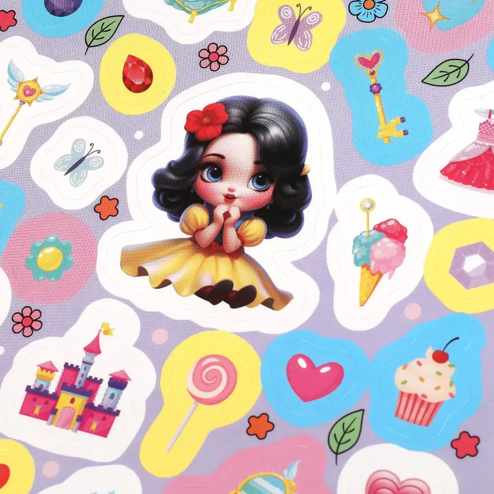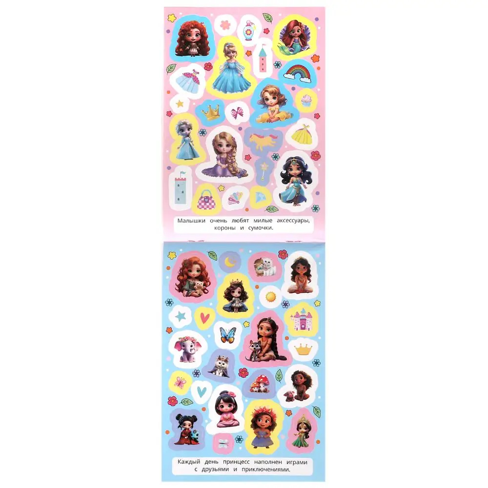 Наклейки с очаровательными принцессами-малышками и милыми предметами можно использовать для украшения альбомов, тетрадей, блокнотов или создания на бумаге удивительных историй с участием героев этой активити. Благодаря компактному формату альбом удобно брать с собой в дорогу.