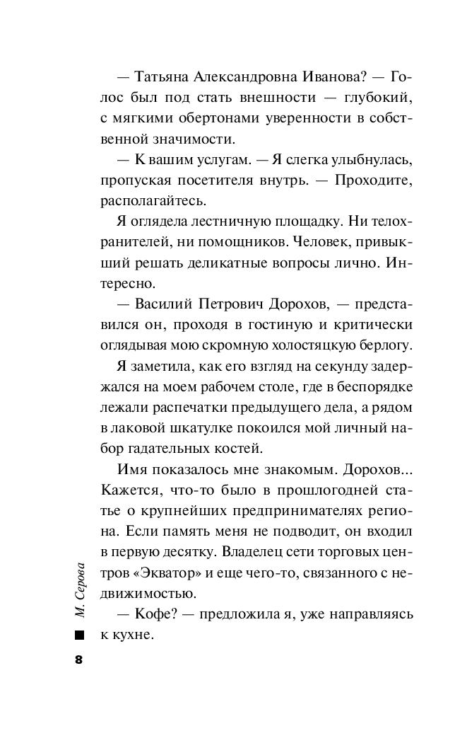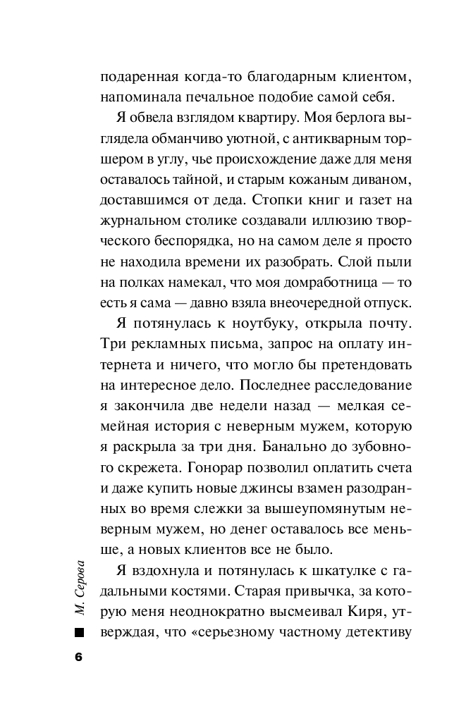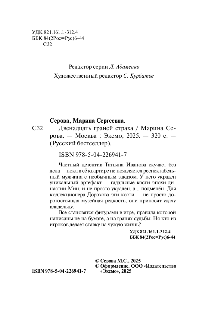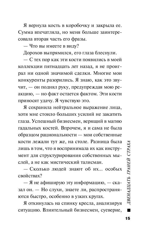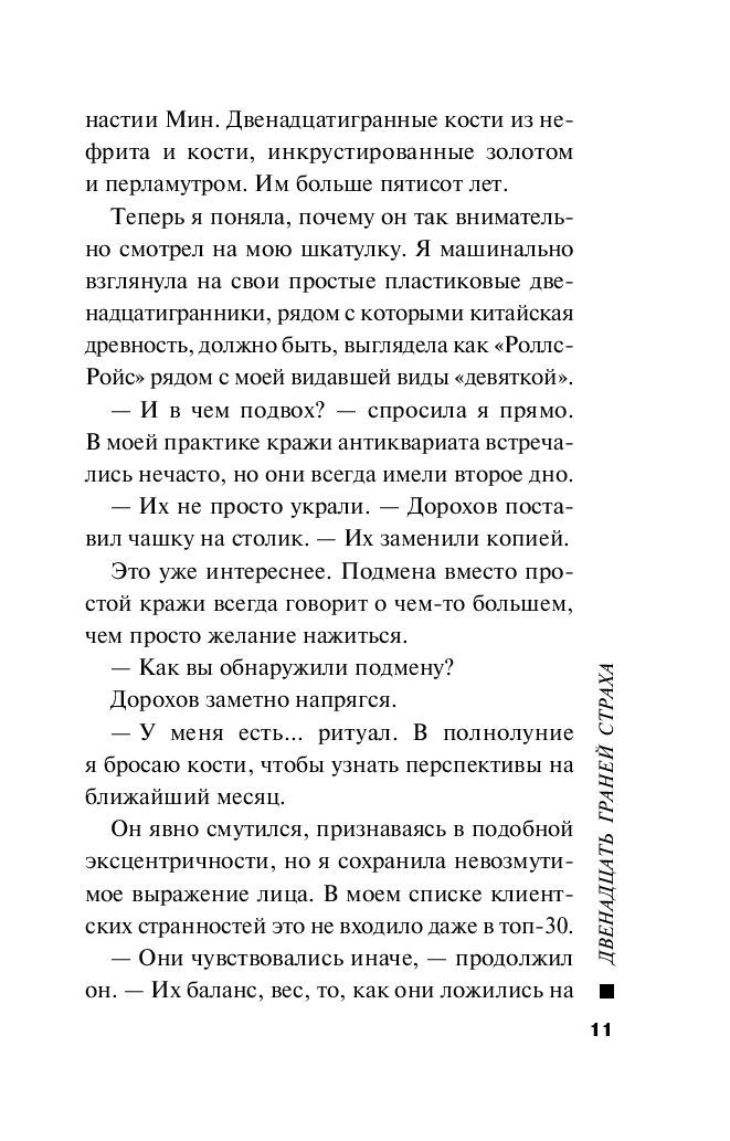 Частный детектив Татьяна Иванова скучает без дела – пока в её квартире не появляется респектабельный мужчина с необычным заказом. У него украден уникальный артефакт – гадальные кости эпохи династии Мин, и не просто украден, а… подменён. Для коллекционера Дорохова эти кости – не просто дорогостоящая музейная редкость, они приносят удачу владельцу. Все становятся фигурами в игре, правила которой написаны не на бумаге, а на гранях судьбы. Но кто из игроков делает ставку на чужую жизнь?