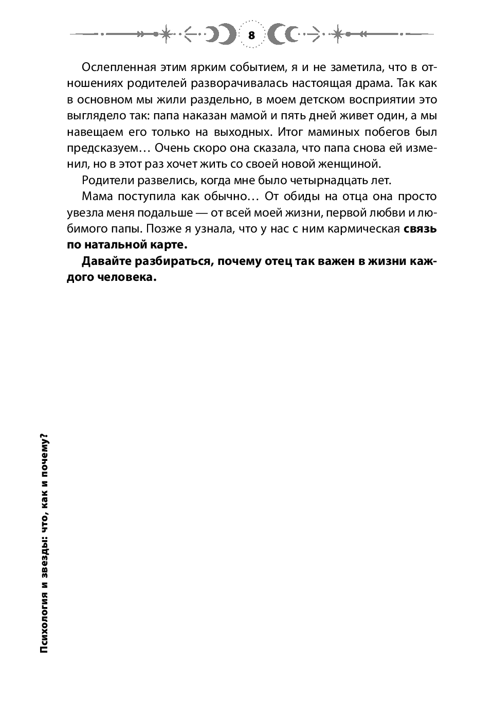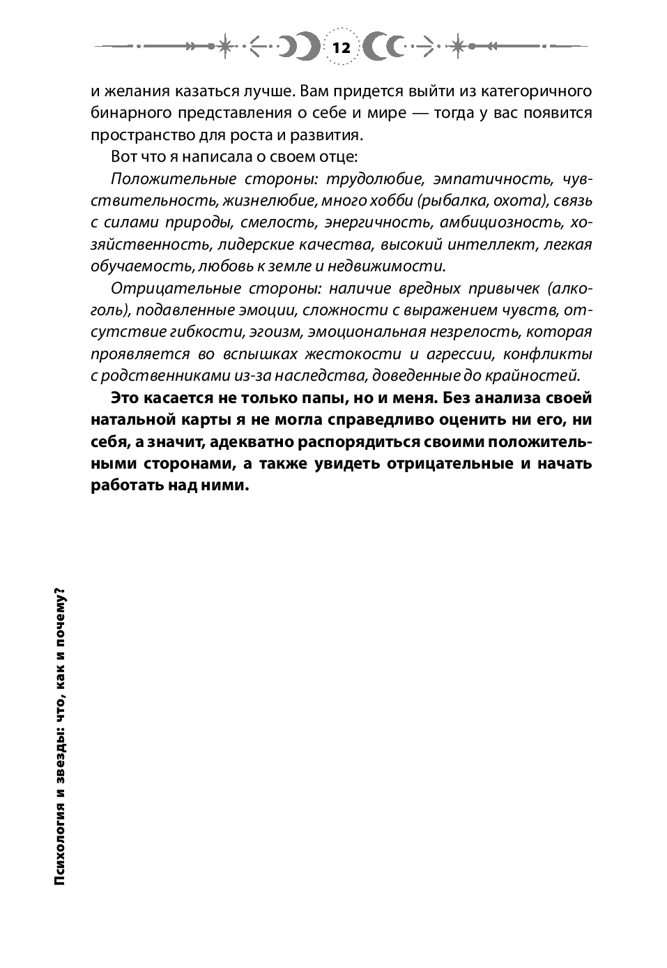 Эта книга – для тех, кто стремится к глубокому самопознанию, выходящему за рамки обычных подходов. Для тех, кто видит в знаках зодиака целые вселенные, а в жизненных событиях – важные уроки. Пройдите этот путь к себе – под светом звезд и с бескомпромиссной честностью перед собой.