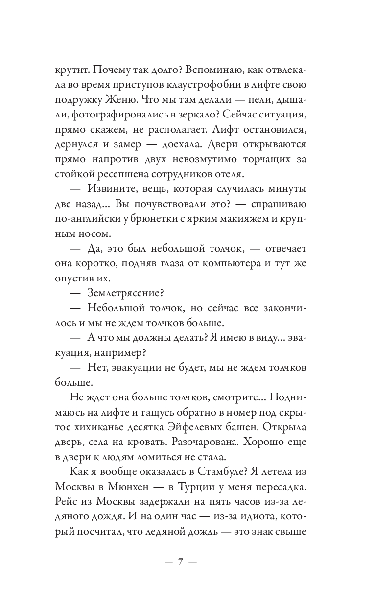 Однажды ночью Вера просыпается от землетрясения в аэропорту Стамбула. И это только начало потрясений, которые ее ждут, когда она покидает Москву, чтобы исполнить мечту детства.