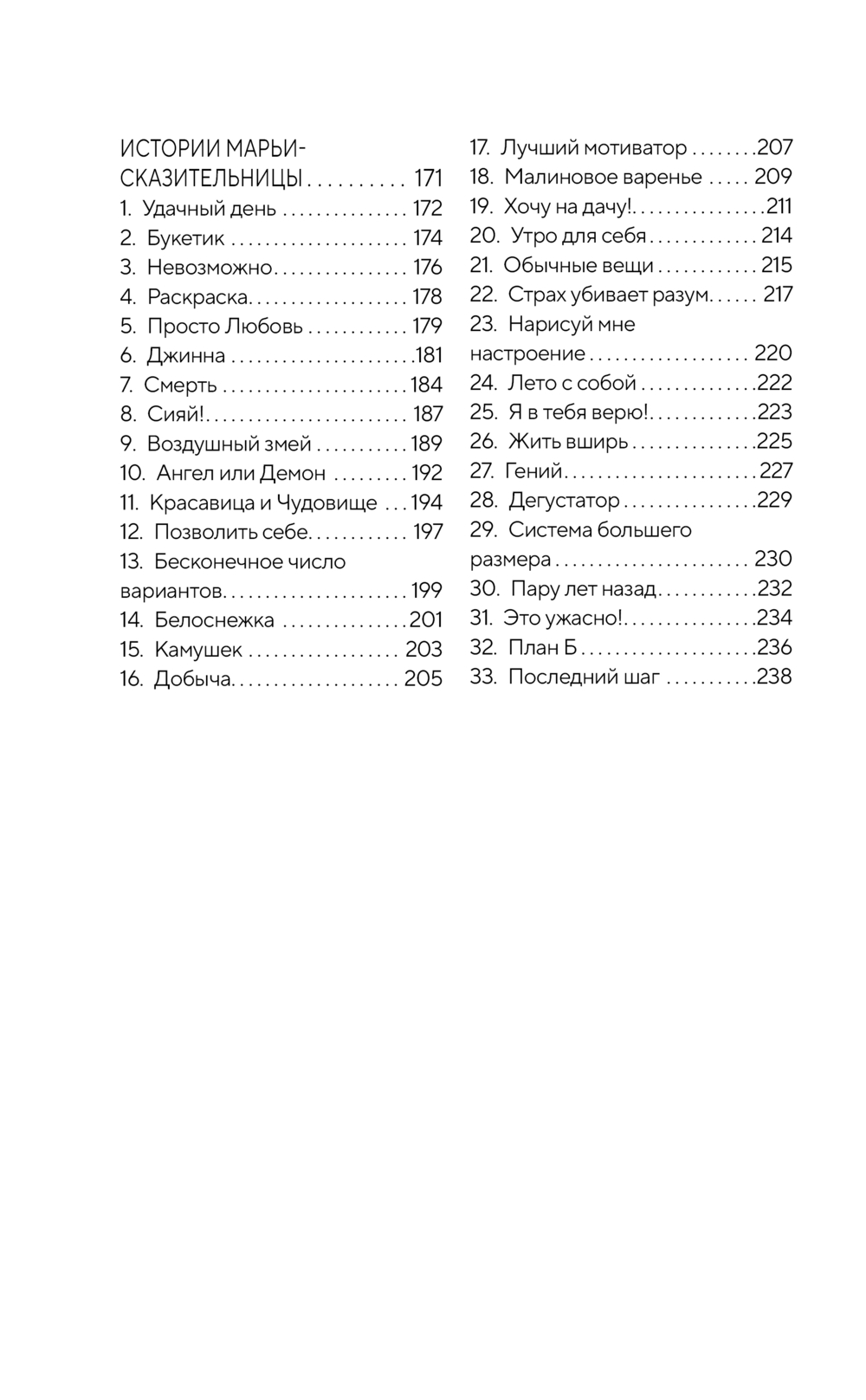 Также можно выбрать номер истории из любого раздела (истории Лесной Ведьмы, истории Маришки, истории Марьи Сказительницы) – в каждом их 33. А можно просто прочитать все истории, и в каких-то из них будет то, что поможет найти решение, которое вы ищете.