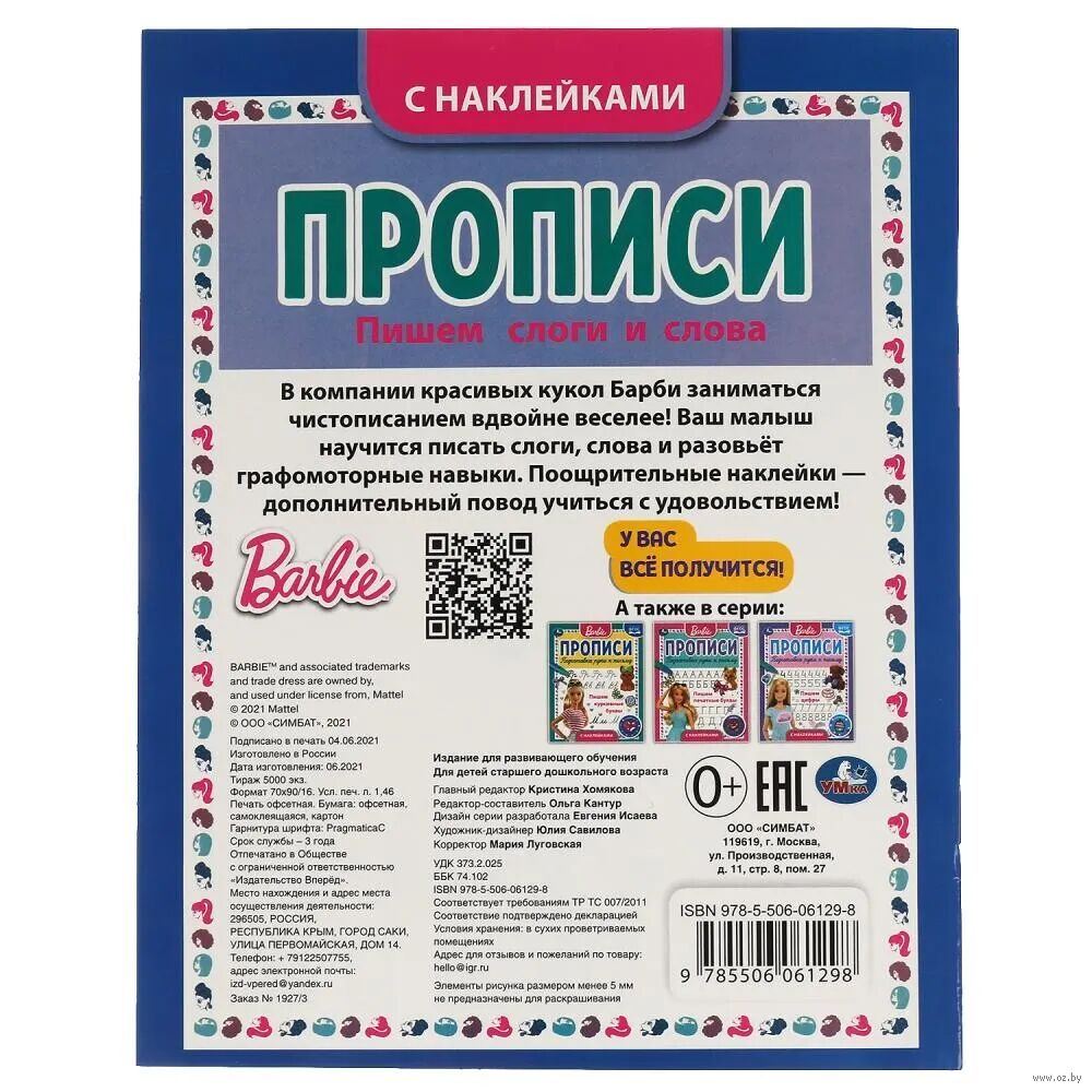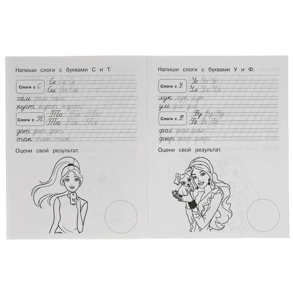 Данная книга с прописями и иллюстрациями-раскрасками с изображением красавицы куклы Барби облегчит процесс обучения ребенка, поможет ему потренировать руку в написании слогов и слов курсивными буквами. А поддерживать интерес к учебе и хвалить за успехи помогут поощрительные наклейки.