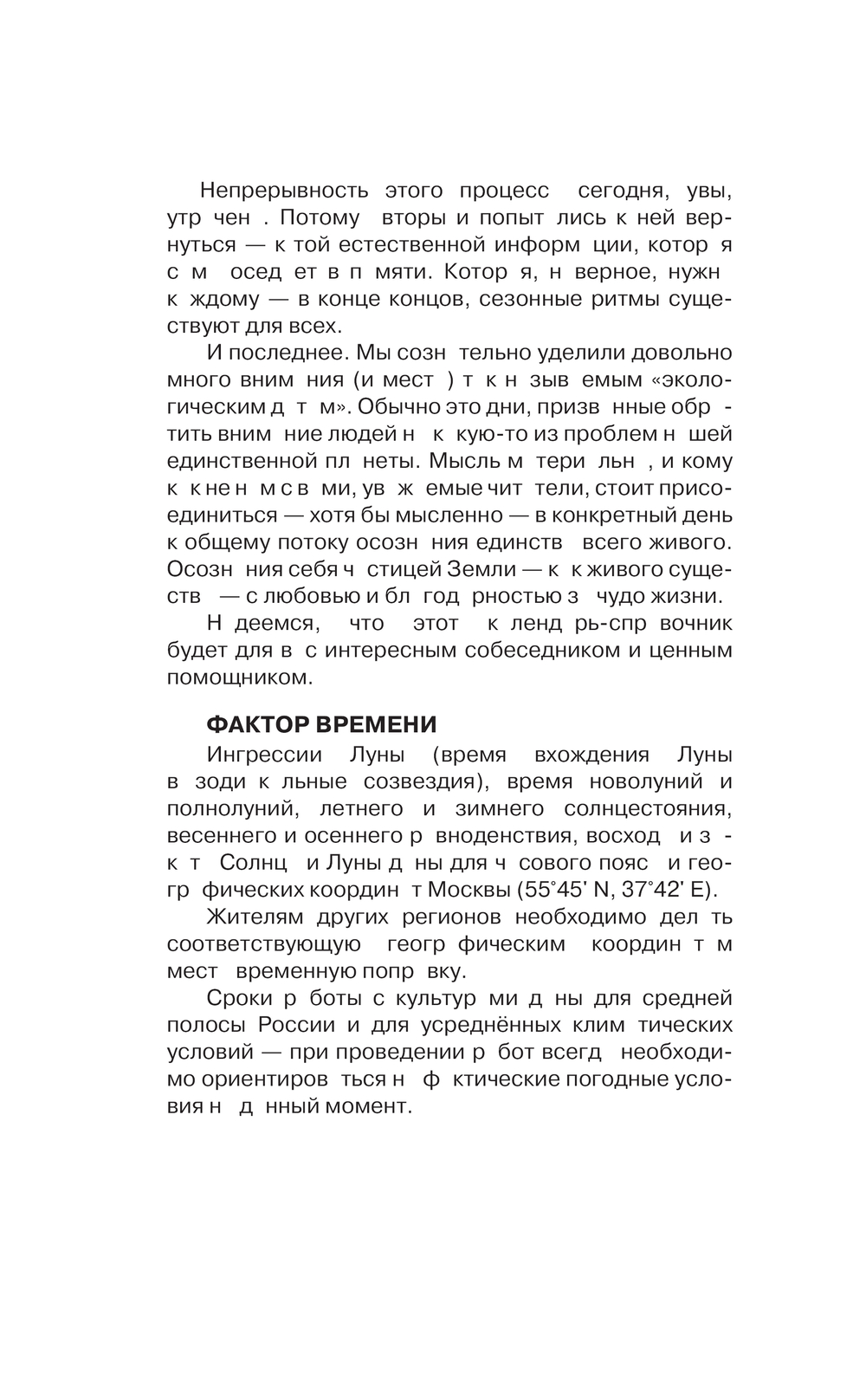 Календарь-сборник полезных народных знаний содержит все секреты успешного садоводства и огородничества: какие дни благоприятны для посева и посадок; когда лучше всего бороться с вредителями; как и когда правильно удобрять почву и собирать урожай для его наибольшей сохранности. Знание сезонных и лунных ритмов, народных примет и обычаев поможет вам с наименьшими усилиями получить богатый урожай. Авторы собрали рецепты вкуснейших домашних заготовок и уникальные рекомендации по укреплению здоровья. Эта книга станет незаменимым помощником на дачном участке и в квартире.
