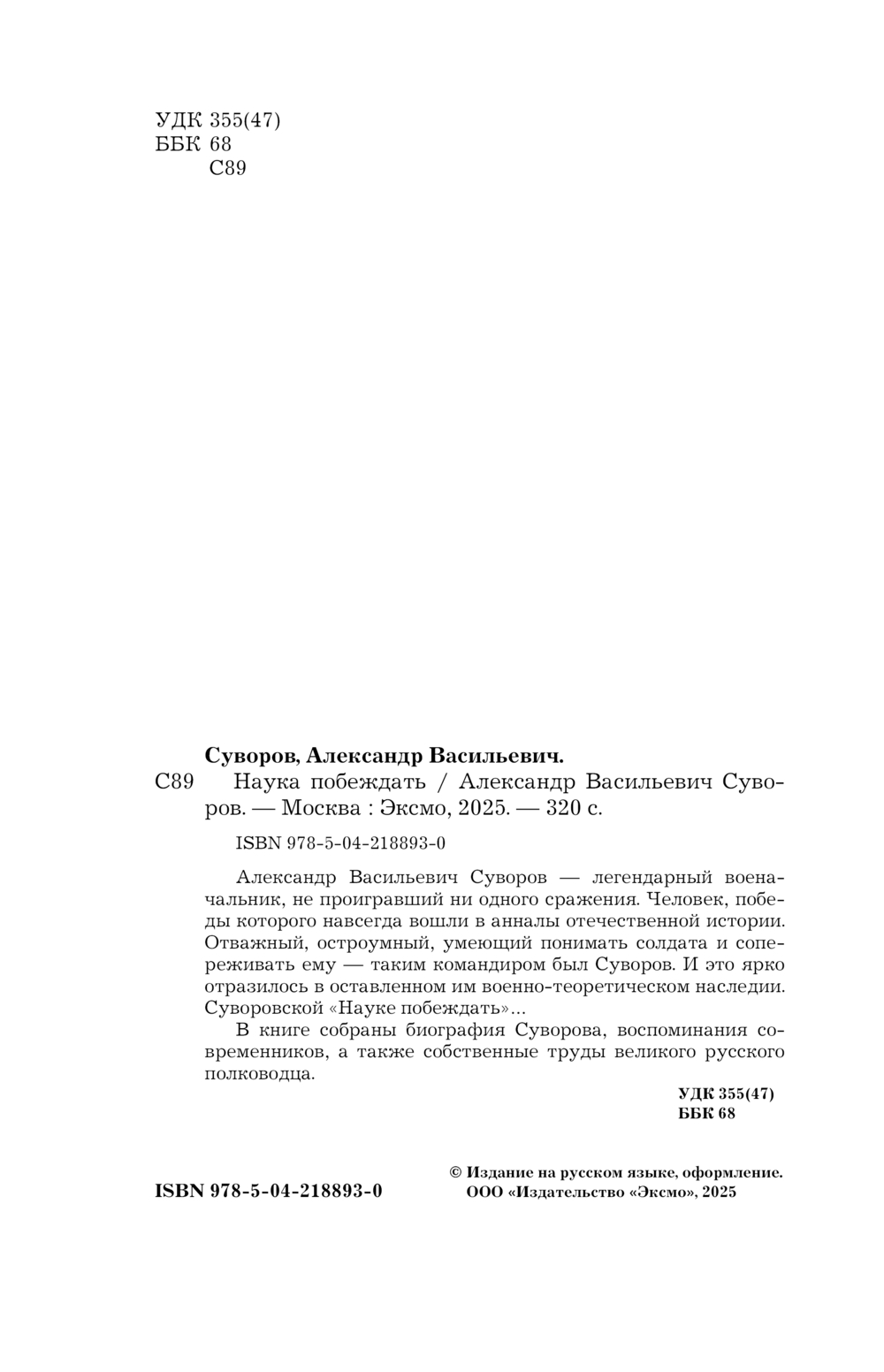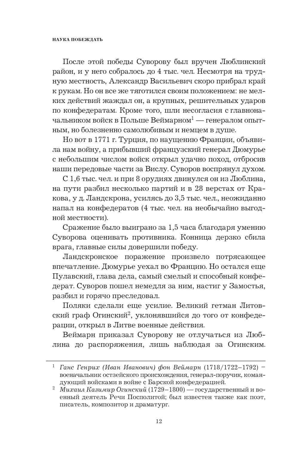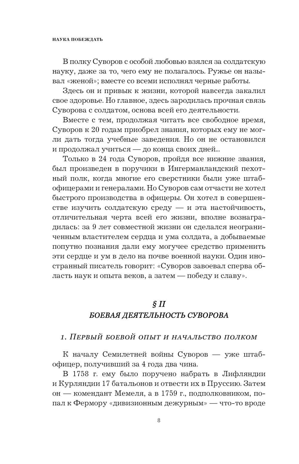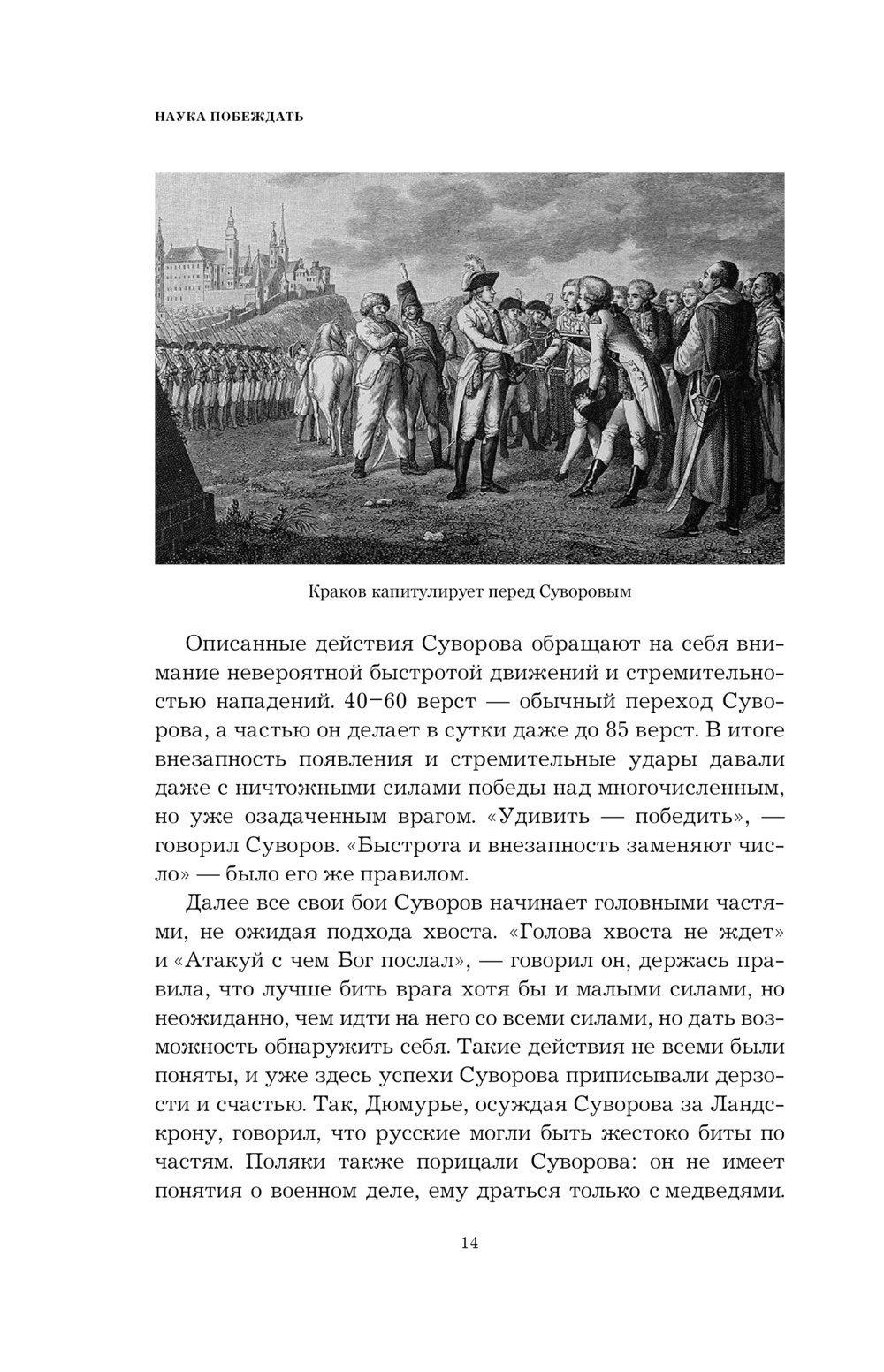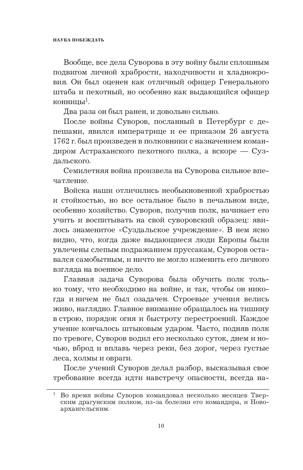 Александр Васильевич Суворов – легендарный военачальник, не проигравший ни одного сражения. Человек, победы которого золотыми буквами вписаны в отечественную историю. Отважный, остроумный, умеющий понимать солдата и сопереживать ему – таким командиром был Суворов. И это ярко отразилось в оставленном им военно-теоретическом наследии. Суворовской "Науке побеждать"…