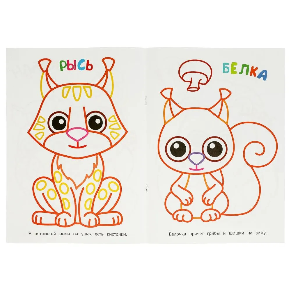 Занимательная раскраска с милыми животными не только развлечет ребенка, но и познакомит с разными видами диких животных, а также поможет ему научиться раскрашивать картинки, не выходя за границы рисунка. Благодаря цветному контуру малыш без труда сможет подобрать нужный цвет и правильно раскрасить иллюстрации.