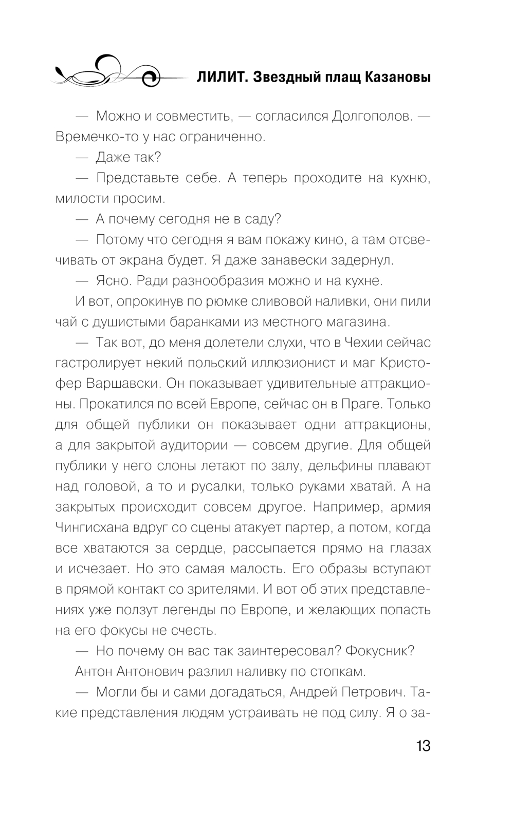 В Европе появляется уникальный иллюзионист Кристофер Варшавски, чьи неповторимые аттракционы не похожи на обычные шоу. Недаром все называют его магом и волшебником. Представления Кристофера скорее напоминают плоды черной магии, чем театрализованное искусство обмана. В огромном серебряном шаре он воскрешает великих людей прошлого, которые выходят за пределы магической сферы и вступают в контакт со зрителями. Но кто стоит за иллюзионистом? Кто дал ему такие фантастические возможности? Андрей Крымов и Антон Антонович Долгополов летят в Чехию, чтобы увидеть одно из чудес Варшавски. Его иллюзион проводится в замке Дукс, где когда-то жил и умер знаменитый сердцеед Джакомо Казанова…