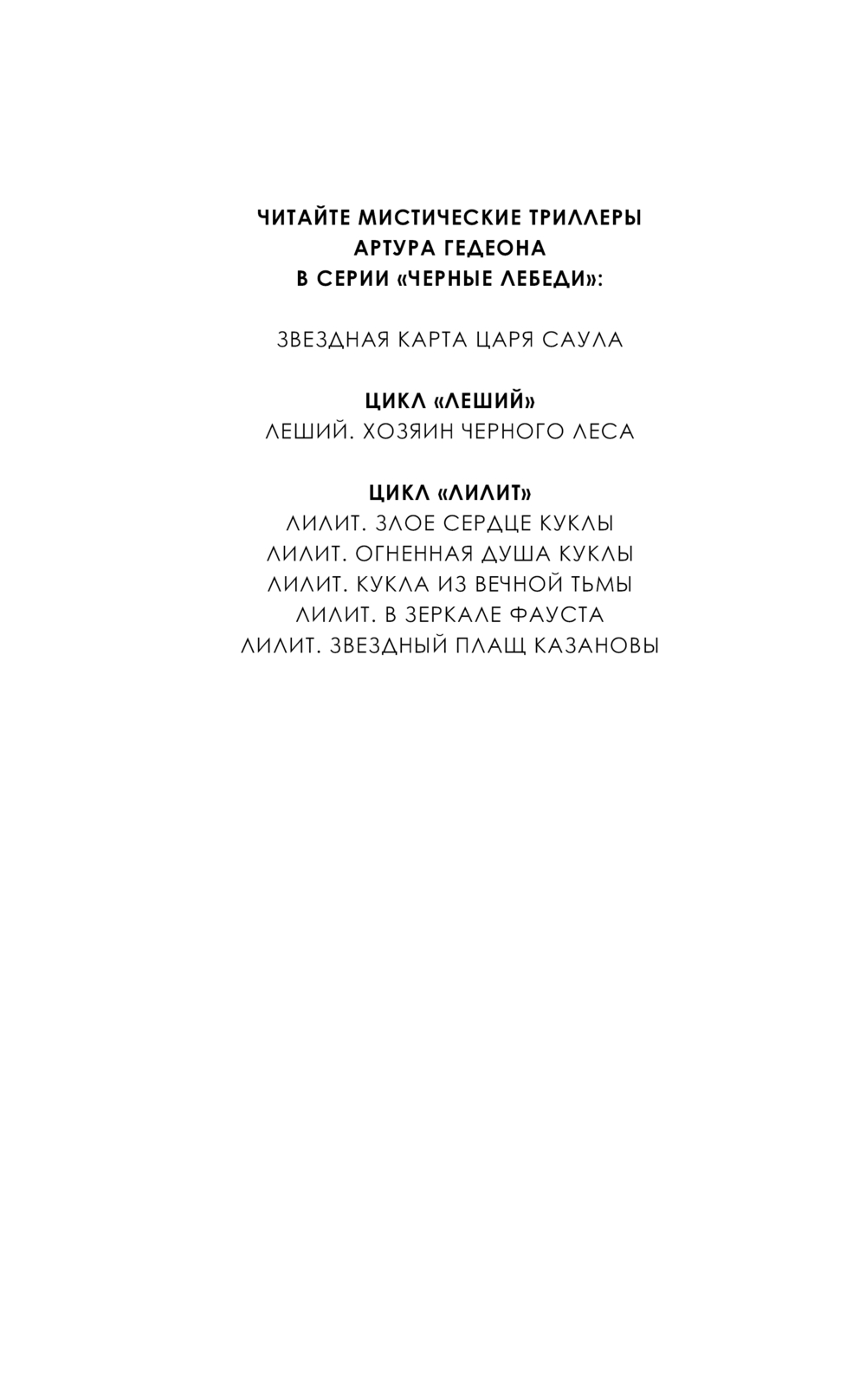| Серия | Чёрные лебеди. Мистические триллеры |
