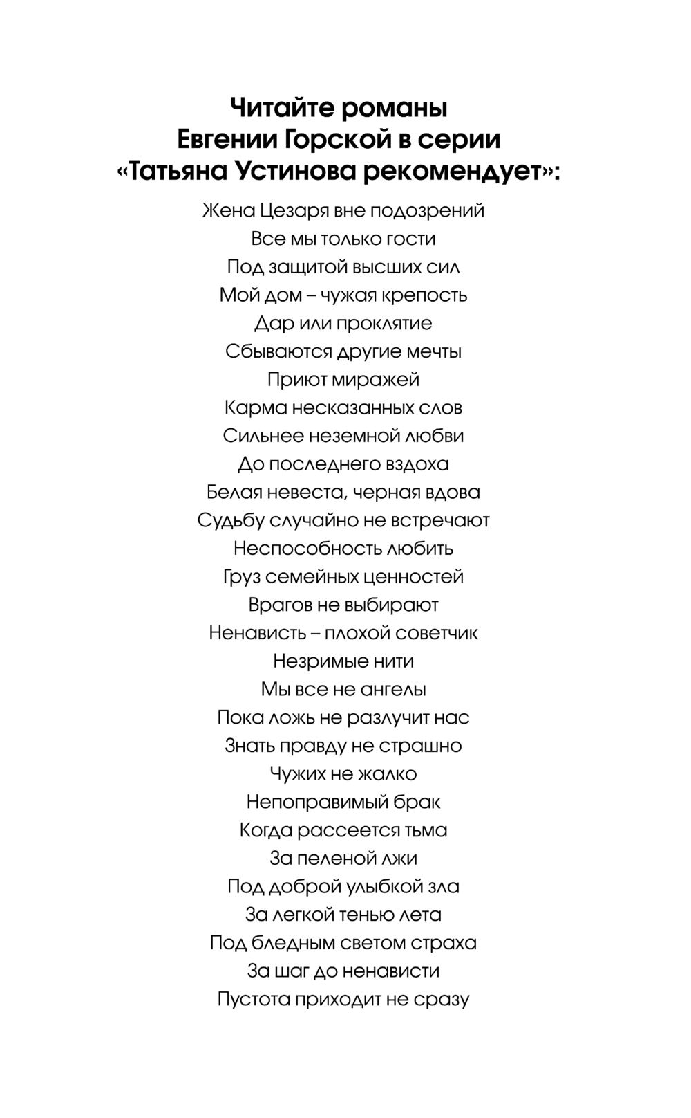 | Серия | Татьяна Устинова рекомендует |