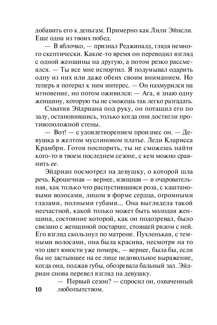 Эйдриан Монтфорт, граф Моубри, жил затворником десять лет, с тех пор как вернулся с войны, – и всему виной шрам, изуродовавший его лицо. Но графу нужен наследник – он все-таки решился выйти в свет с целью найти жену и на первом же балу повстречал юную Клариссу Камбри. Эйдриан влюбился с первого взгляда – да и Кларисса, кажется, отвечает ему взаимностью.