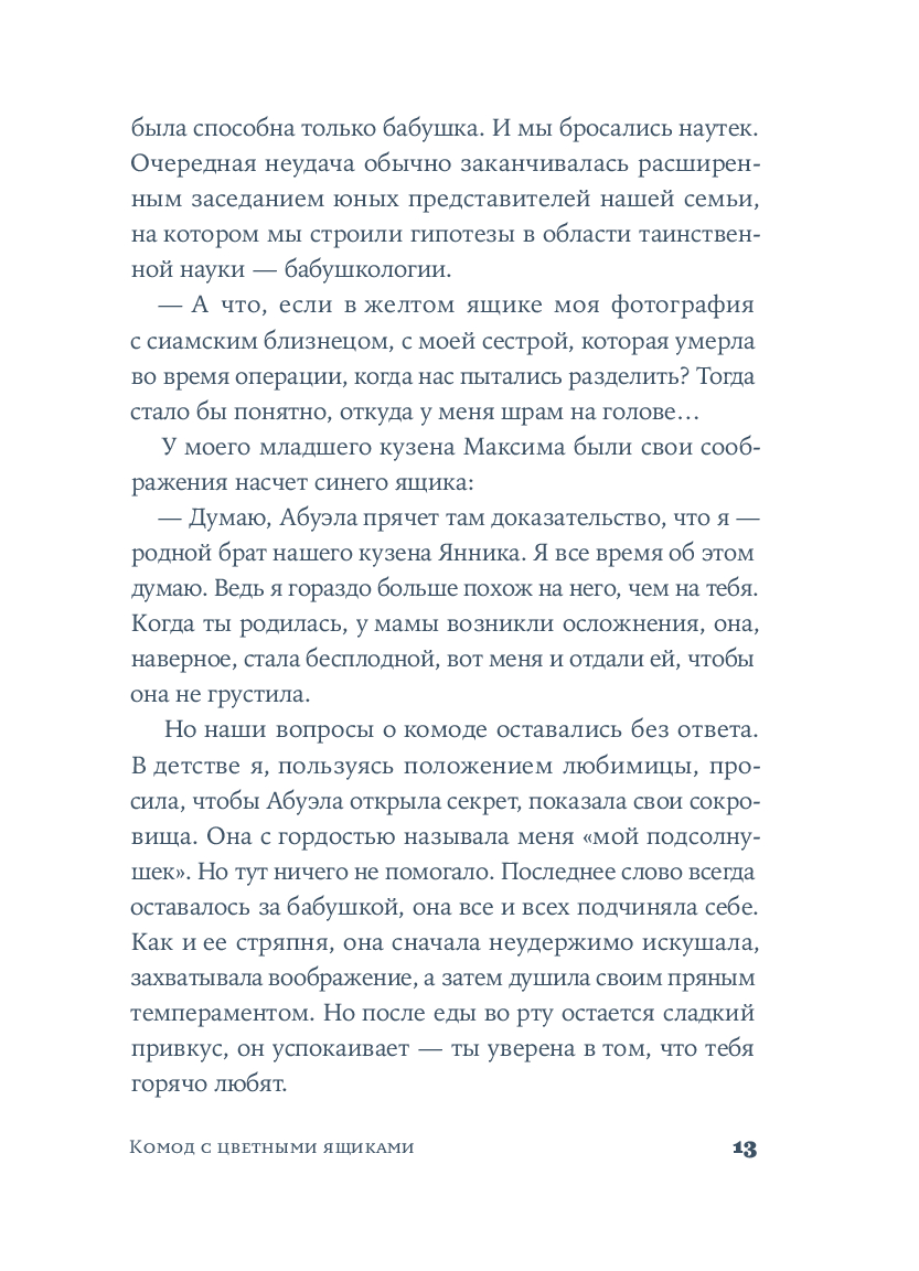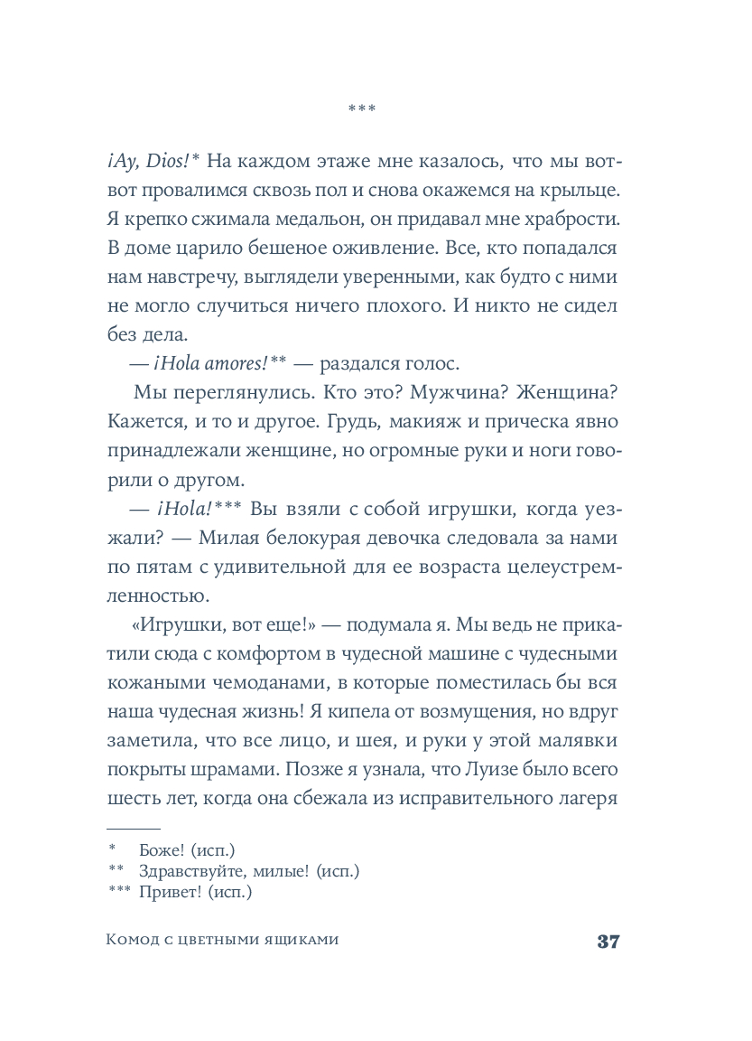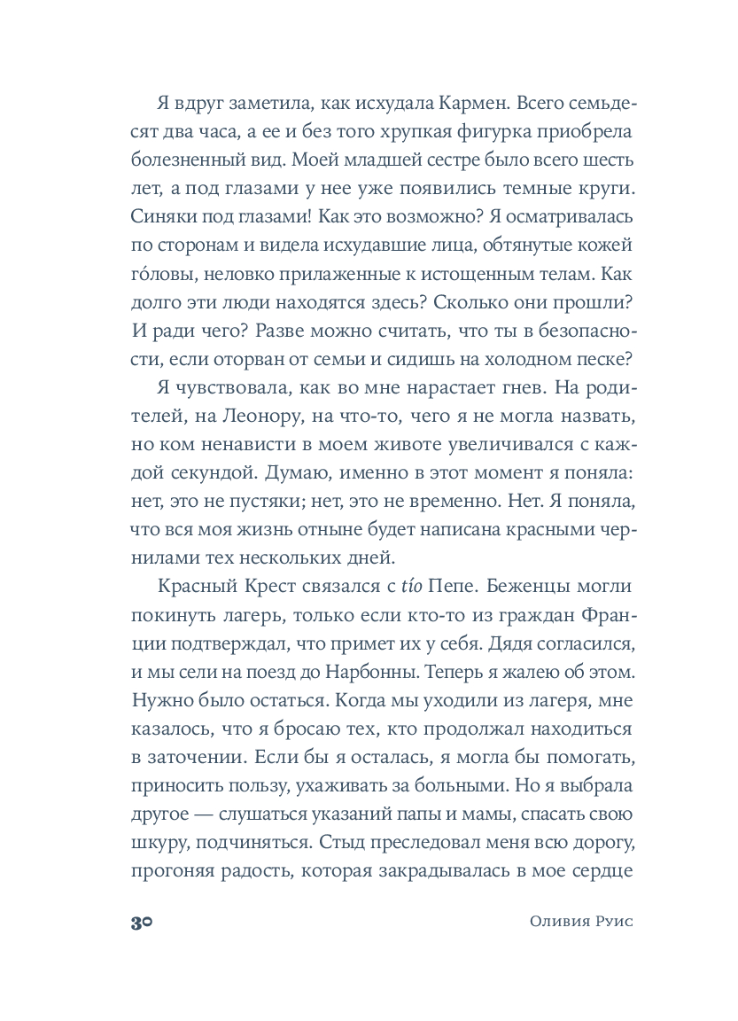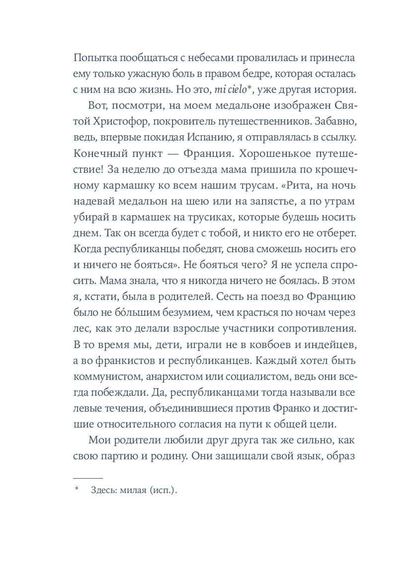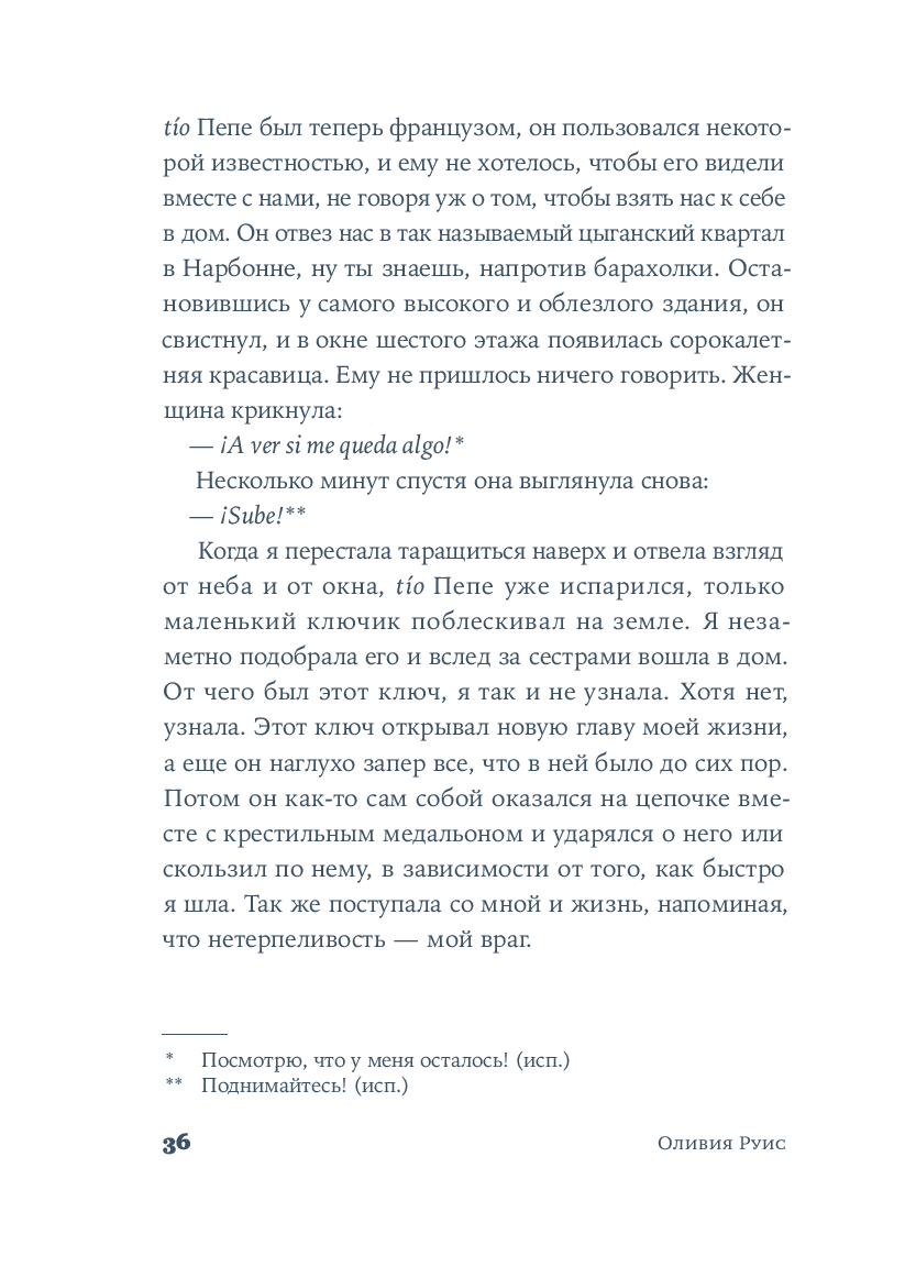 Крестильный медальон, тетрадь со стихами, билет на поезд... Каждый из этих предметов, спрятанных в старинном комоде, хранит память о жизни людей близких и далеких. За одну ночь героине предстоит повернуть все ключики в замках и узнать о судьбе своей семьи со времен Гражданской войны в Испании до наших дней. Вещи расскажут ей истории Риты, Леоноры и Кармен, которые находили силы любить, смеяться и надеяться, поднимаясь на ноги после каждого удара судьбы. Роман Оливии Руис, уже покоривший сотни тысяч читателей, – о том, как важно "знать, откуда мы пришли, чтобы узнать, куда мы идем".