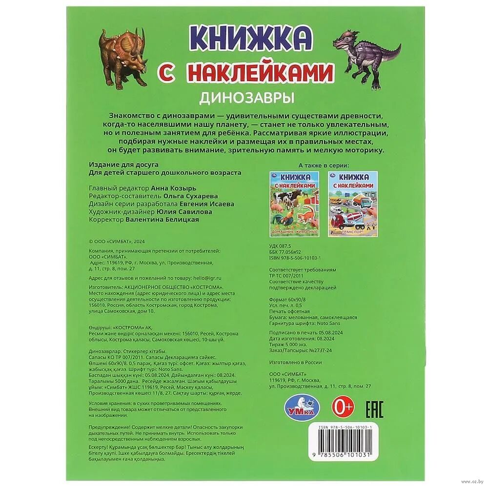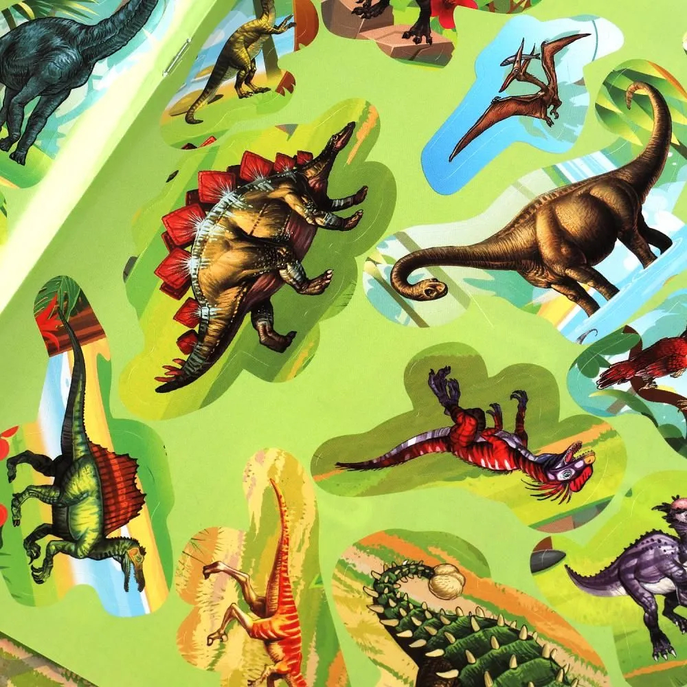 Книжка с наклейками станет не только увлекательным, но и полезным занятием для ребёнка. Рассматривая яркие иллюстрации, подбирая нужные наклейки и размещая их в правильных местах, малыш будет знакомиться с разными видами древних ящеров и развивать внимание, зрительную память и мелкую моторику.