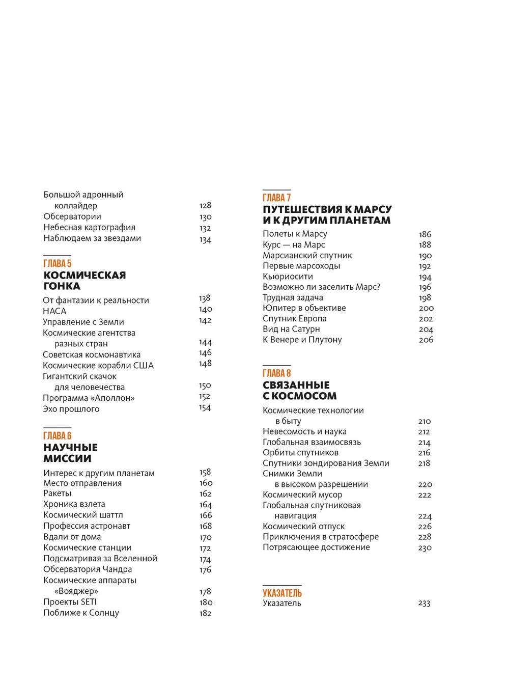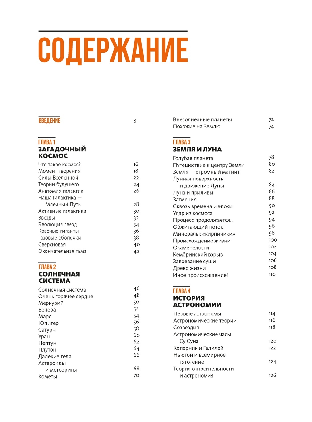 Перед вами книга, которая раскроет секреты космоса. Всё, что известно человечеству о Вселенной, теперь доступно в виде захватывающих фотографий, подробных схем и трехмерных изображений! Вы узнаете, как сформировалась Вселенная, из каких фаз состоит жизненный цикл звезд и сколько существует экзопланет, похожих на Землю. Эта энциклопедия также расскажет про устройство Солнечной системы, загадки Млечного Пути и теории первых астрономов, а еще познакомит с инновационными технологиями, которые прямо сейчас помогают человечеству осваивать космическое пространство.