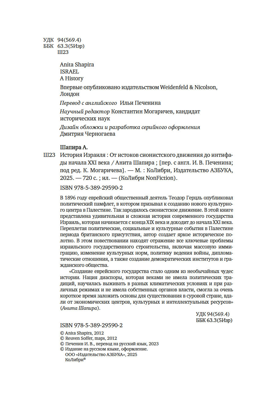 В 1896 году еврейский общественный деятель Теодор Герцль опубликовал политический памфлет, в котором призывал к созданию нового культурного центра в Палестине. Так зародилось сионистское движение. В этой книге представлена удивительная и сложная история современного государства Израиль, которая начинается с конца XIX века и доходит до начала XXI века. Переплетая политические, социальные и культурные события в Палестине периода британского присутствия, автор создает яркое историческое полотно. В этом повествовании находят отражение все ключевые проблемы израильского государственного строительства, включая массовую иммиграцию, изменение культурных норм, политику ведения войны, дипломатические отношения, а также создание демократических институтов и гражданского общества.
