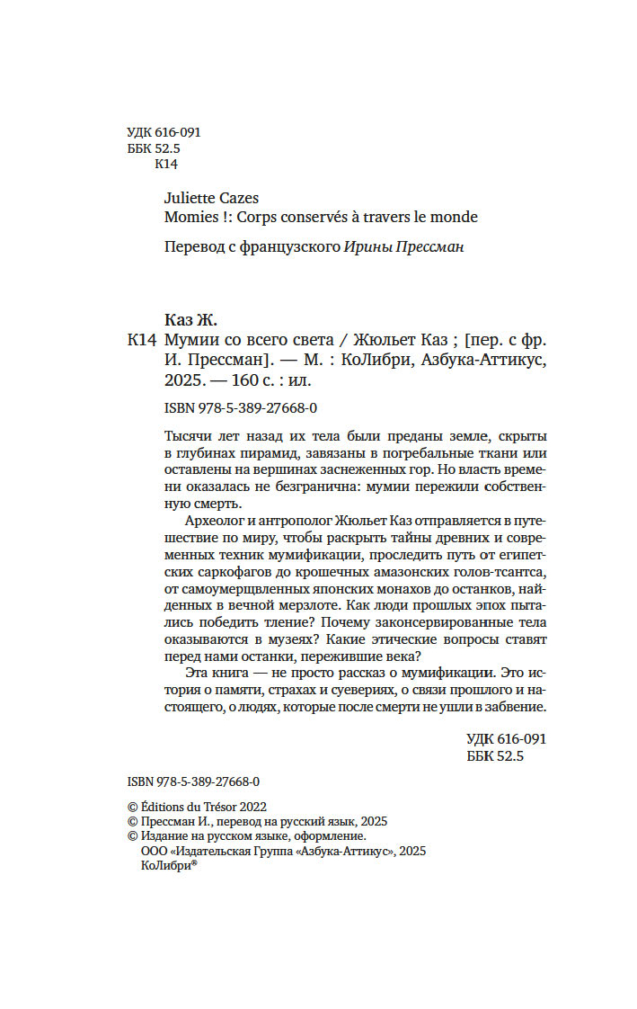 Эта книга – не просто рассказ о мумификации. Это история о памяти, страхах и суевериях, о связи прошлого и настоящего, о людях, которые после смерти не ушли в забвение.