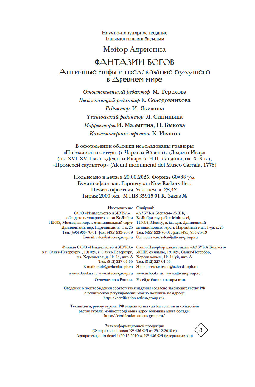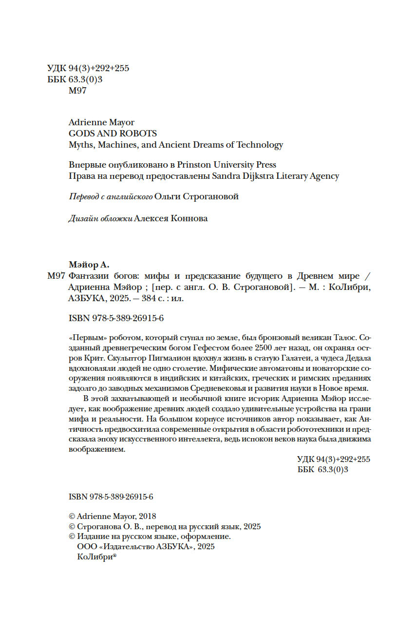 В этой захватывающей и необычной книге историк Адриенна Мэйор исследует, как воображение древних людей создало удивительные устройства на грани мифа и реальности. На большом корпусе источников автор показывает, как Античность предвосхитила современные открытия в области робототехники и предсказала эпоху искусственного интеллекта, ведь испокон веков наука была движима воображением.