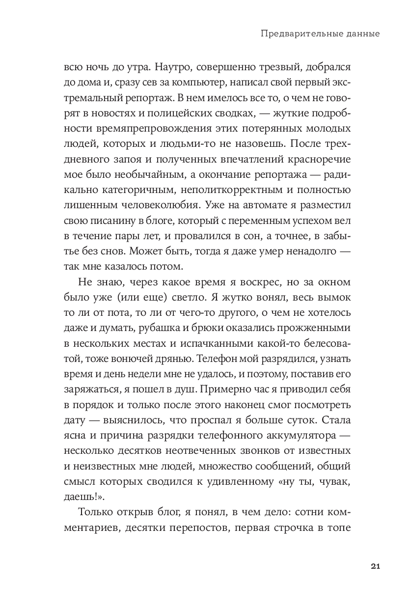 Читать книгу Алексея Решетуна – как слушать истории хорошего рассказчика, много повидавшего, но по-прежнему внимательно наблюдающего за происходящим вокруг. Судмедэксперт с более чем 20-летним стажем, автор популярного блога mossudmed и лауреат литературных премий пишет об удивительных поворотах человеческих судеб, становящихся под его пером притчами о людях и мире вокруг. Это сдержанная и точная проза, в которой частная биография автора становится поводом для разговора о жизни во всех ее проявлениях – иногда страшных, иногда трогательных, а порой очень смешных.