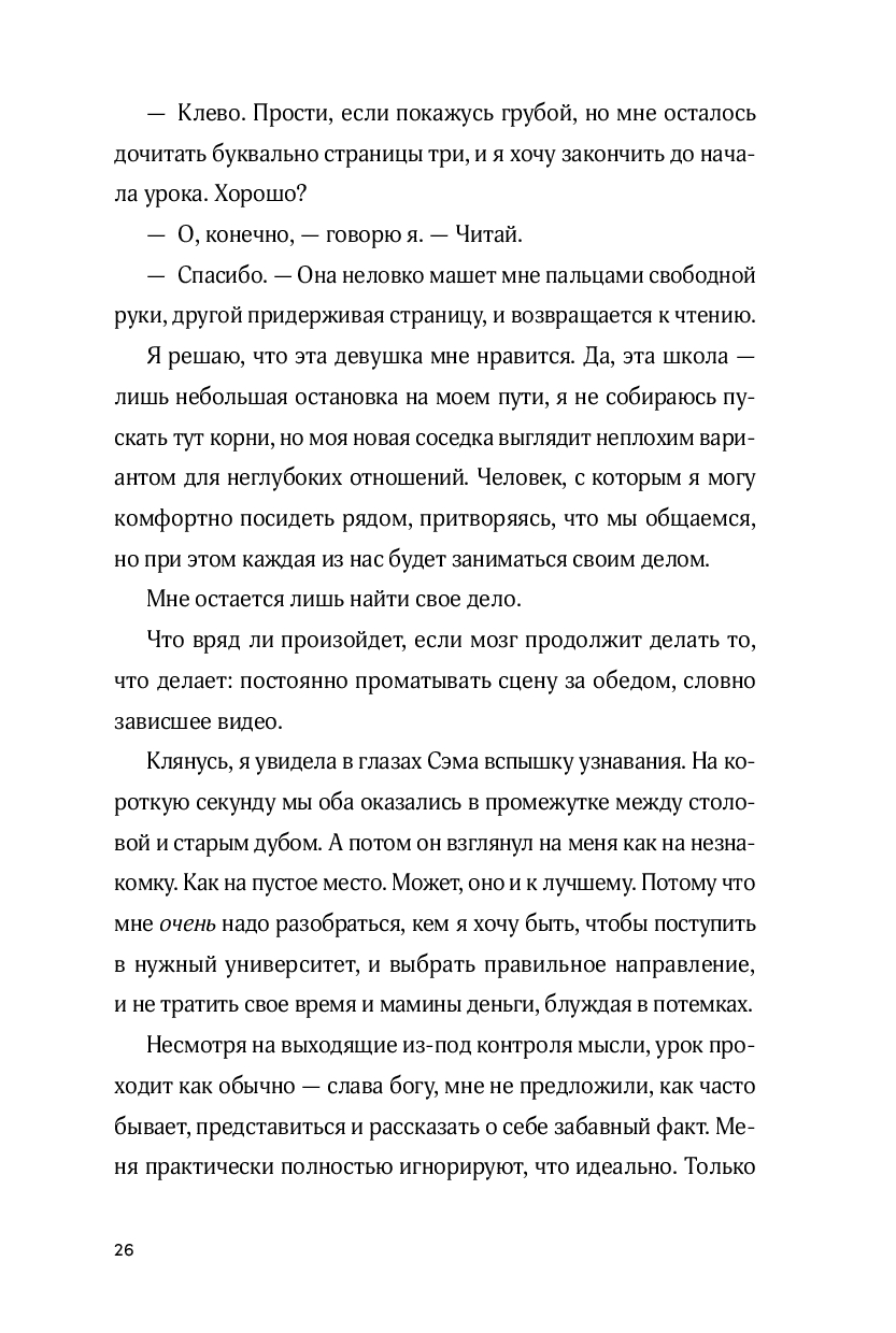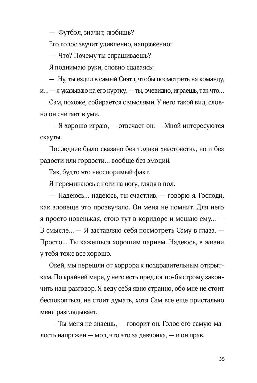 Жизнь Сэма Джордана расписана наперед. У него есть девушка и план получить спортивную стипендию в университете – обратной дороги нет. И неважно, что теперь он то и дело думает о девчонке, которую случайно встретил в столовой. Она напоминает ему о прошлом и о чувствах, спрятанных глубоко внутри...