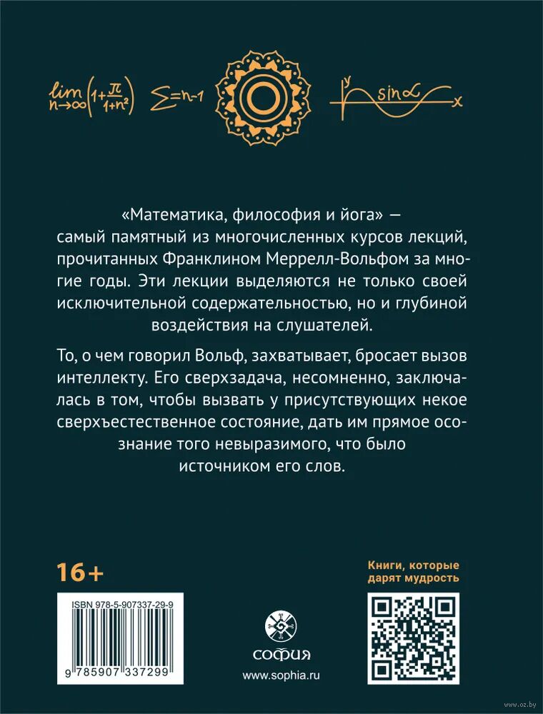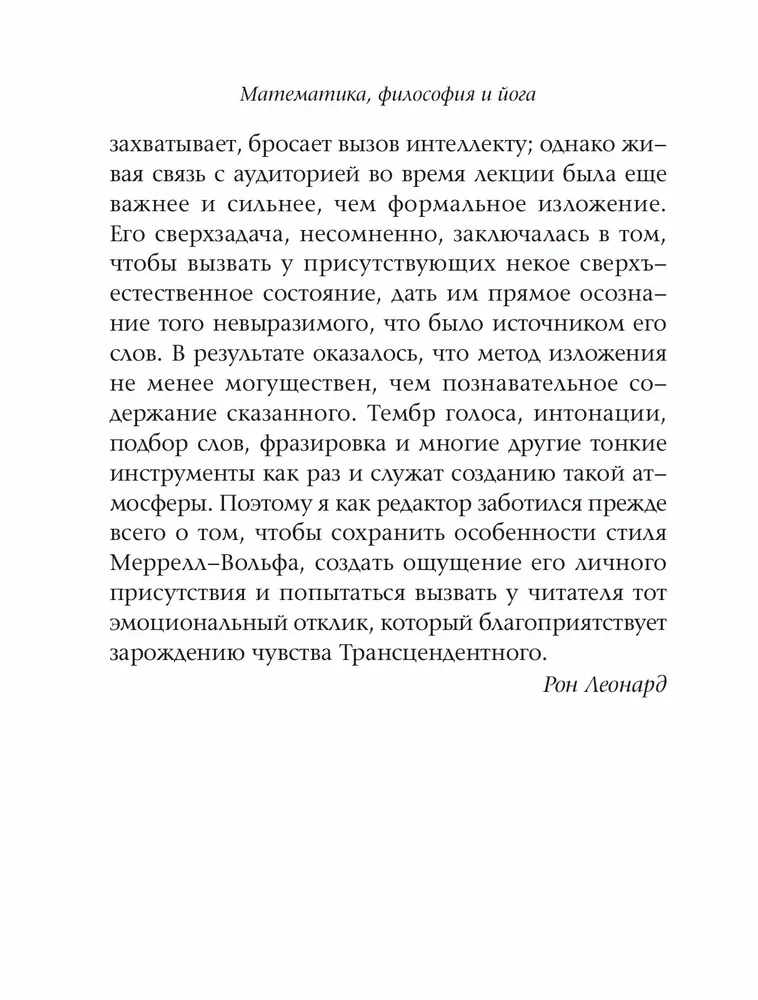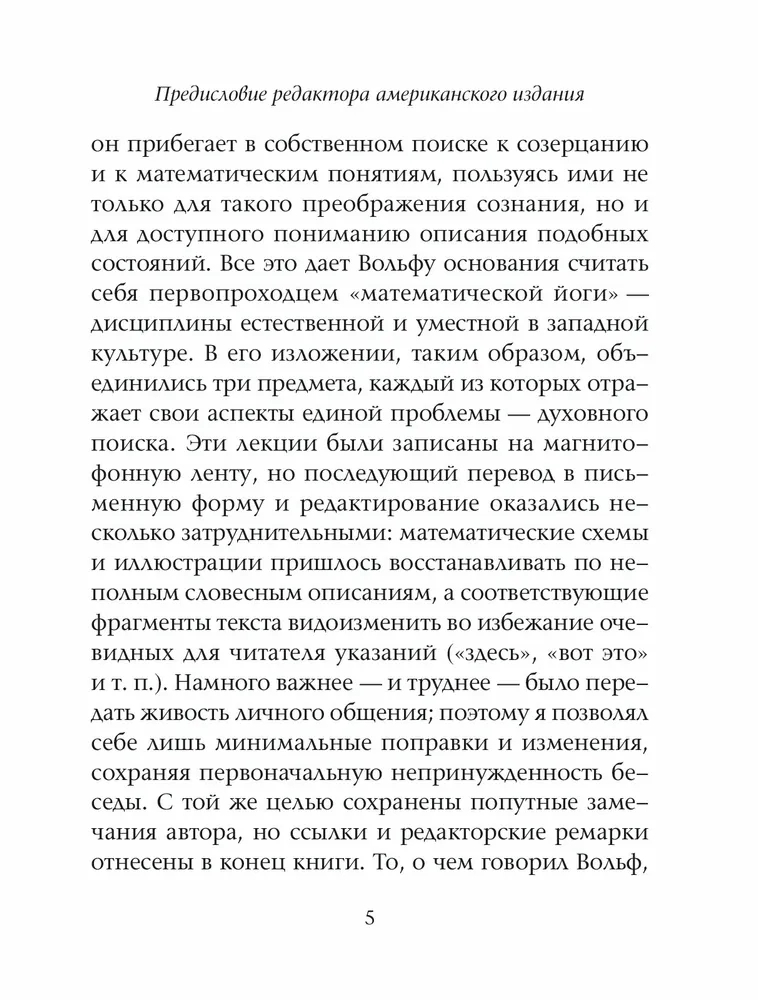 "Математика, философия и йога" – самый памятный из многочисленных курсов лекций, прочитанных Франклином Меррелл-Вольфом за многие годы. Эти лекции выделяются не только своей исключительной содержательностью, но и глубиной воздействия на слушателей.