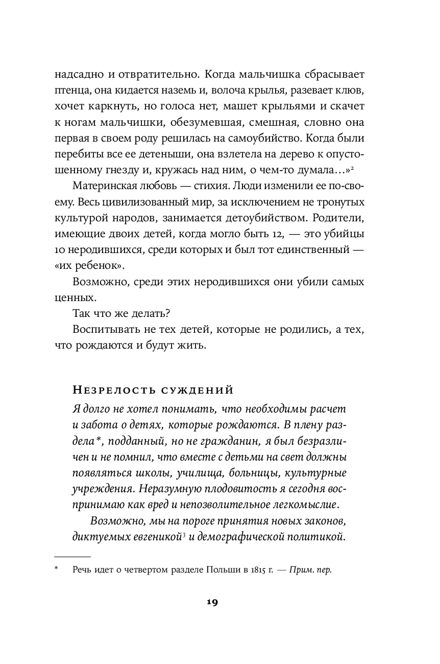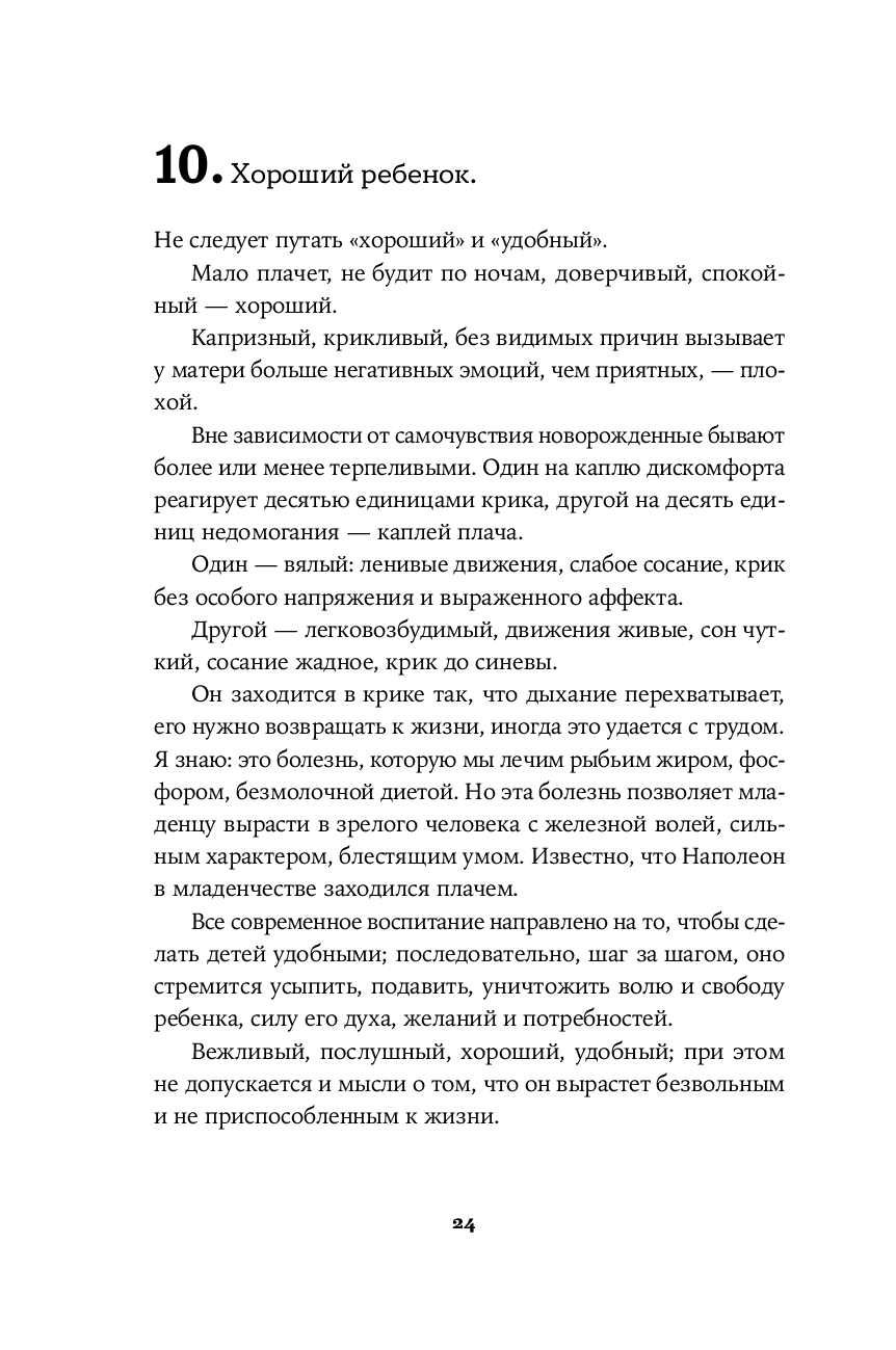 Автор говорит с позиции защитника детей и их прав, вместе с читателем проходя тернистый путь развития и взросления маленького человека от рождения до юности.