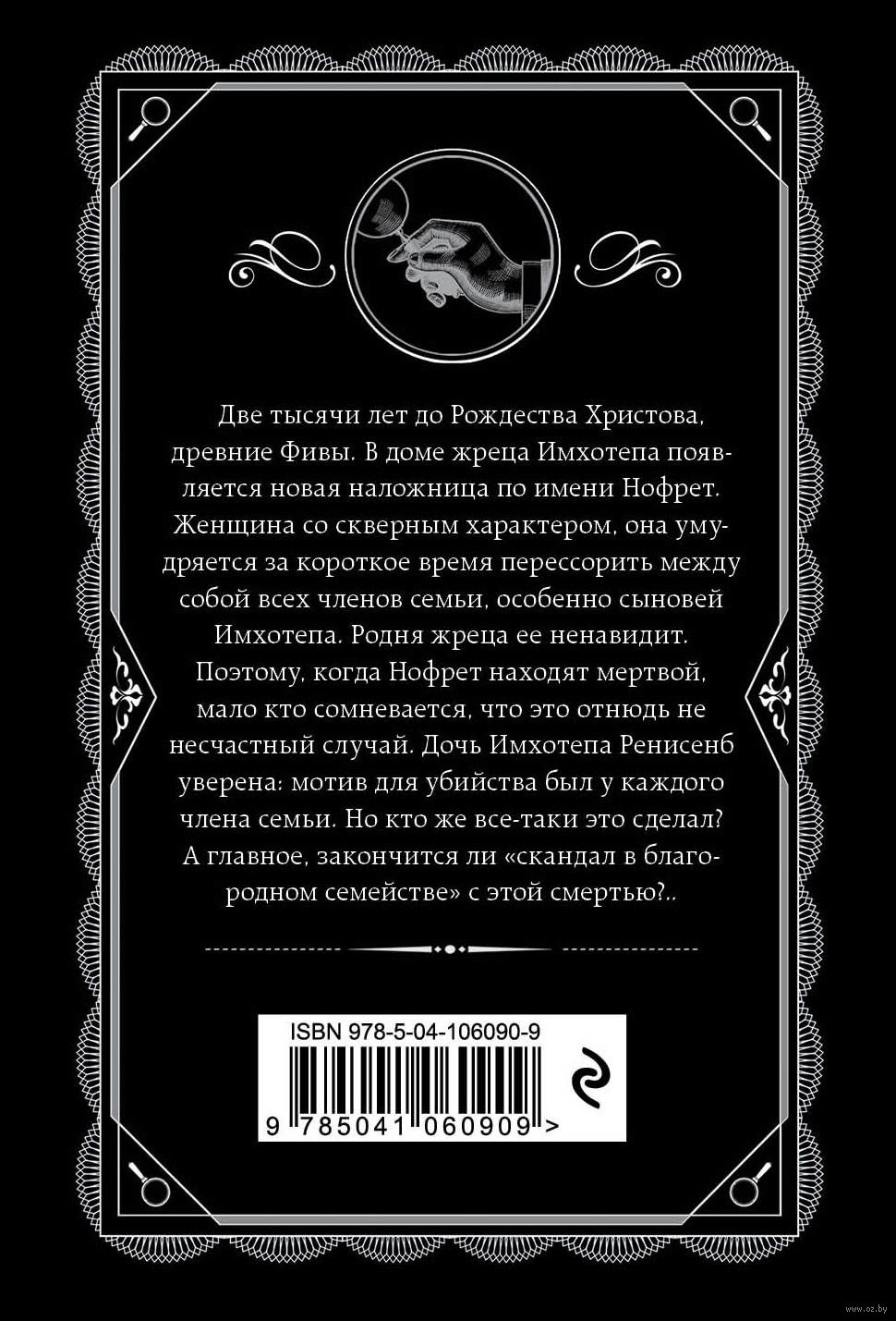 Поэтому, когда Нофрет находят мертвой, мало кто сомневается, что это отнюдь не несчастный случай. Дочь Имхотепа Ренисенб уверена: мотив для убийства был у каждого члена семьи. Но кто же все-таки это сделал? А главное, закончится ли "скандал в благородном семействе" с этой смертью?..