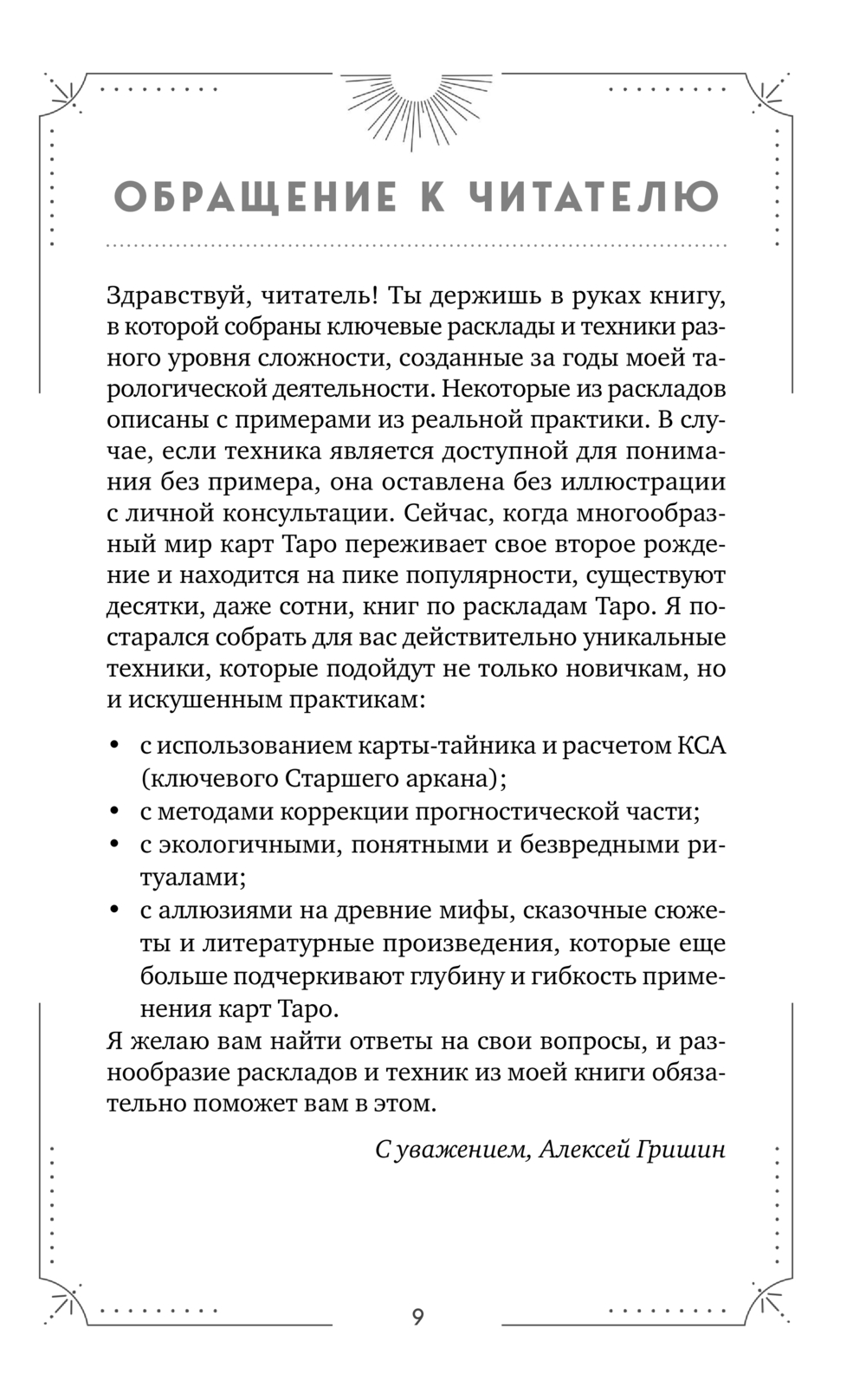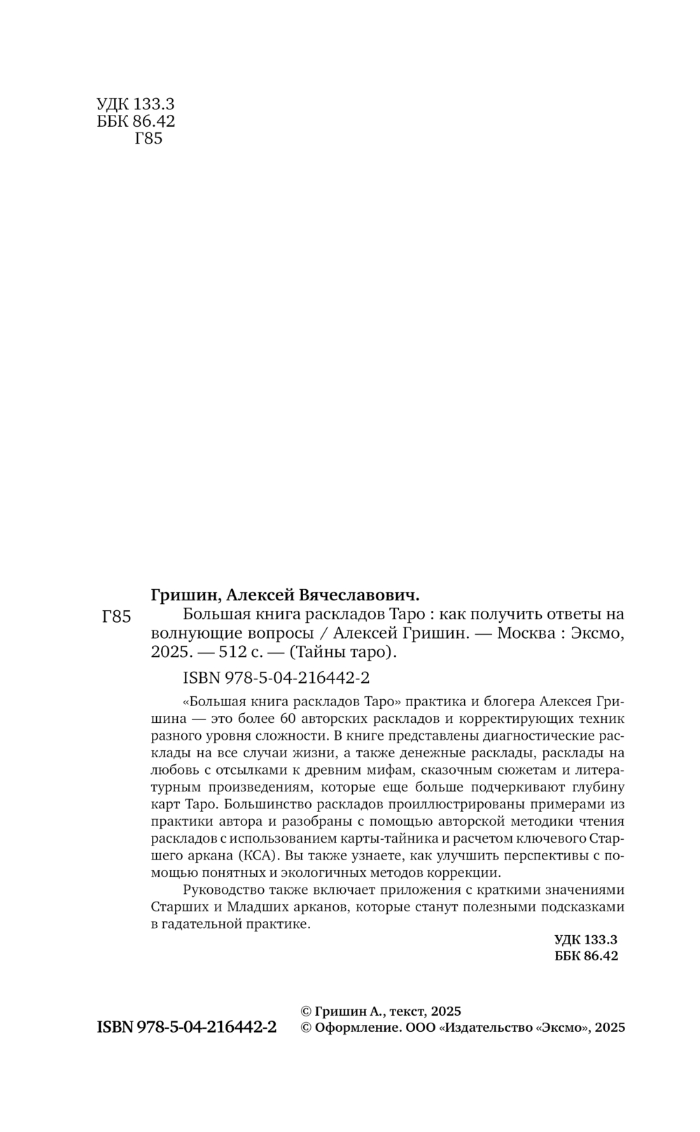 "Большая книга раскладов Таро" практика и блогера Алексея Гришина – это более 60 авторских раскладов и корректирующих техник разного уровня сложности. С ее помощью вы сможете получить ответы на волнующие вопросы, получить подсказку в затруднительной ситуации и найти из нее выход.