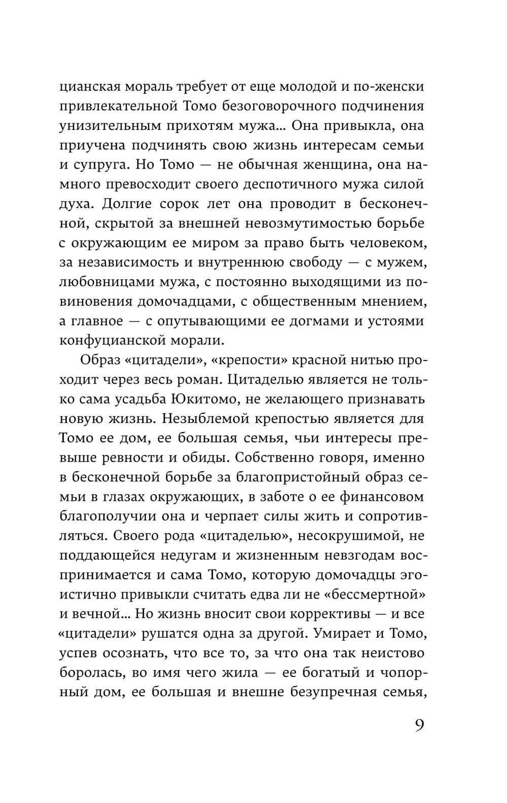 Муж повелел Томо выбрать на свой вкус молоденькую наложницу и привезти ее в их семейный дом. Как послушная жена, Томо подчинилась. Как женщина, Томо покрыла свою душу непробиваемой броней и превратилась в цитадель. Отныне ей придется наблюдать, как сластолюбивый муж обольстит сначала юную наложницу, потом соблазнит невинную служанку, а затем заведет роман с женой своего умалишенного сына. Сможет ли цитадель устоять от такого напора или ей суждено пасть?