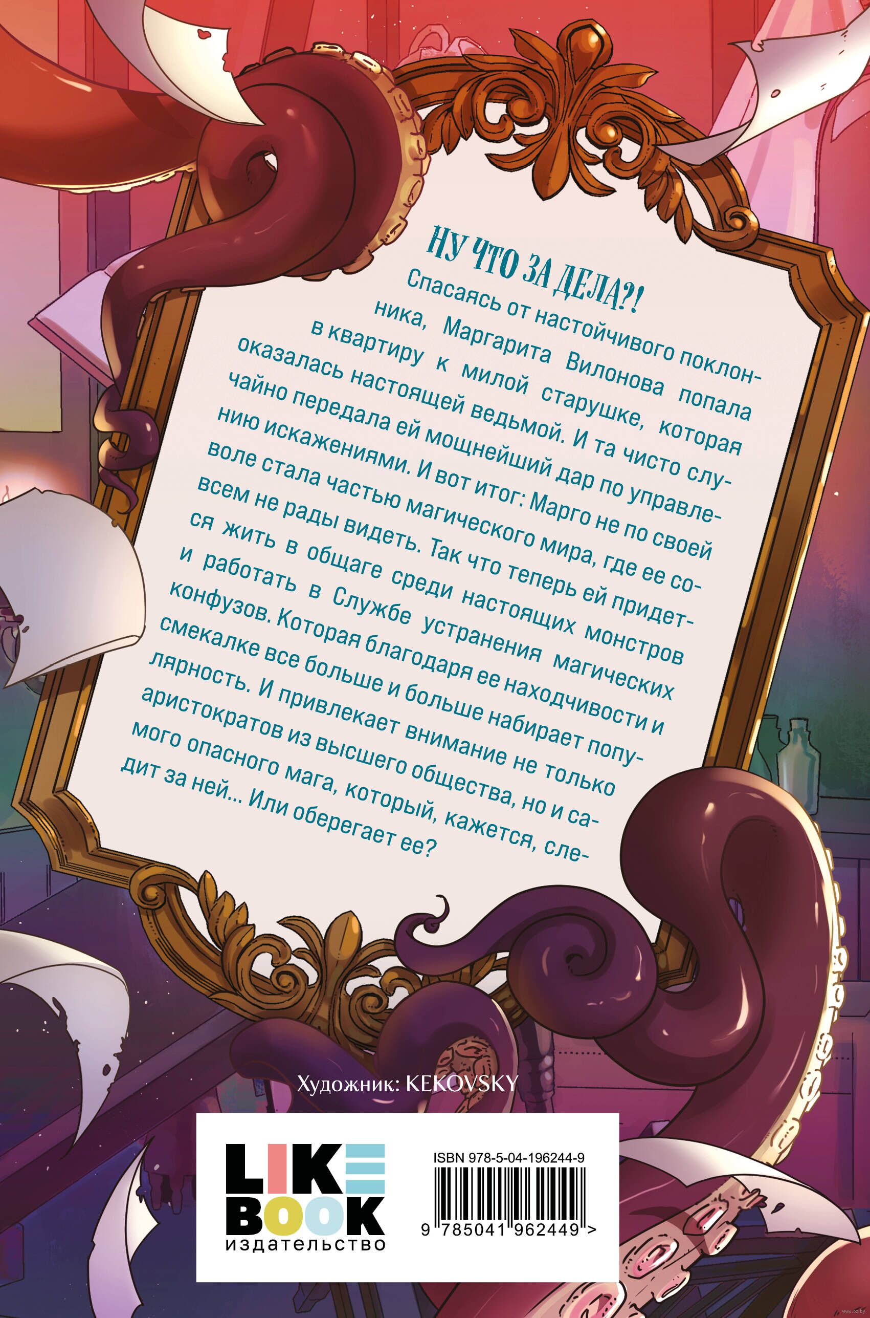 Ну что за дела?! Спасаясь от настойчивого поклонника, Маргарита Вилонова попала в квартиру к милой старушке, которая оказалась настоящей ведьмой. И та чисто случайно передала ей мощнейший дар по управлению искажениями. И вот итог: Марго не по своей воле стала частью магического мира, где её совсем не рады видеть. Так что теперь ей придется жить в общаге среди настоящих монстров и работать в Службе устранения магических конфузов. Которая благодаря ее находчивости и смекалке все больше и больше набирает популярность. И привлекает внимание не только аристократов из высшего общества, но и самого опасного мага, который, кажется, следит за ней… Или оберегает ее?