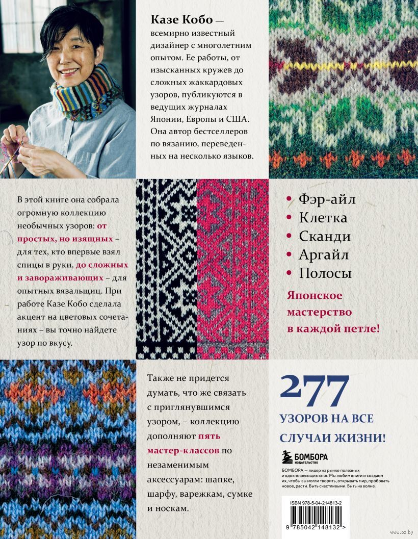 Казе Кобо – всемирно известный дизайнер с многолетним опытом. В этой книге она собрала огромную коллекцию необычных узоров: от простых, но изящных, до сложных и завораживающих: клетка, фэр-айл, полосы, сканди, аргайл. Также не придется думать, что же связать с приглянувшимся узором – коллекцию дополняют пять мастер-классов по незаменимым аксессуарам: шапке, шарфу, варежкам, сумке и носкам. Японское мастерство в каждой петле!