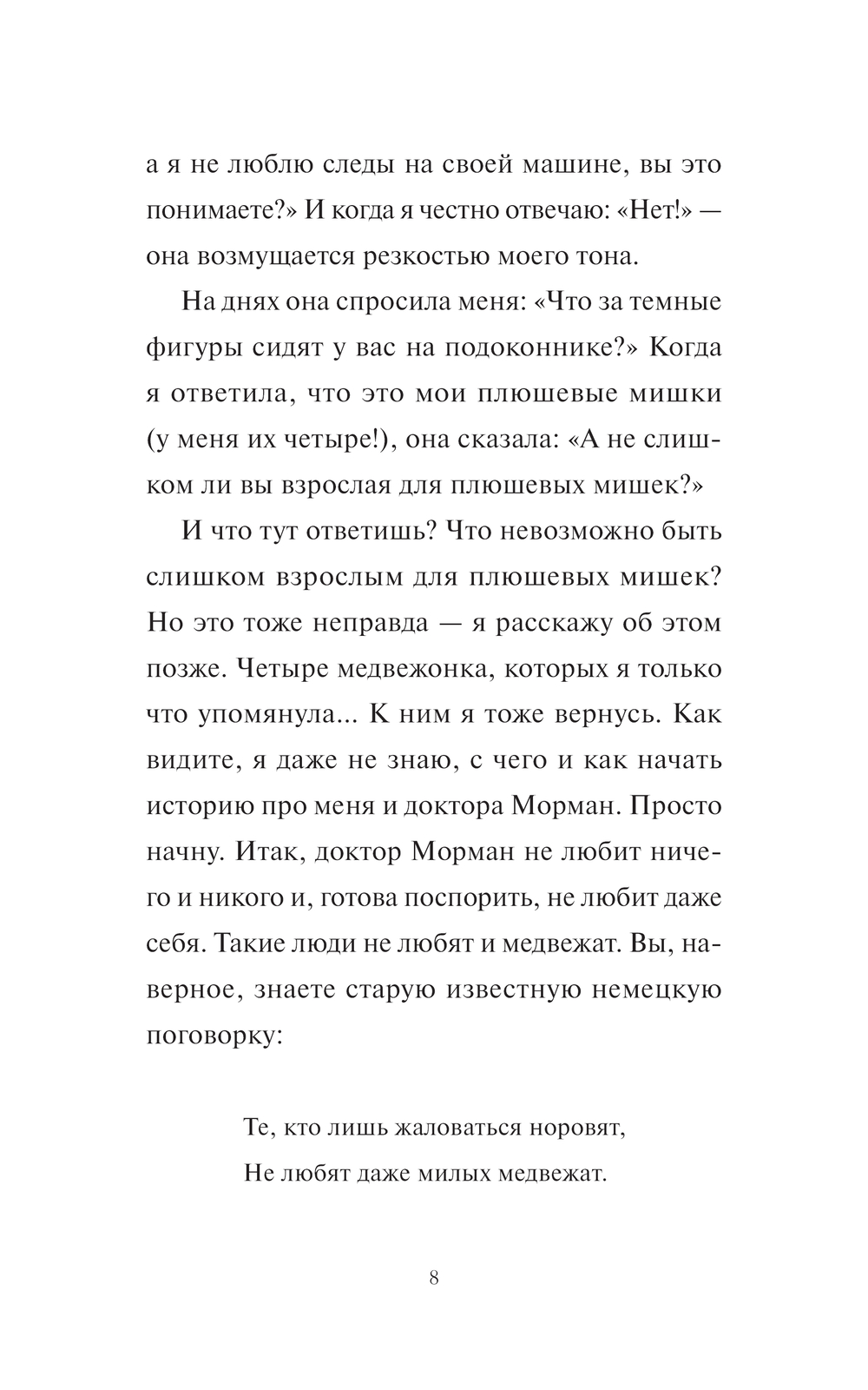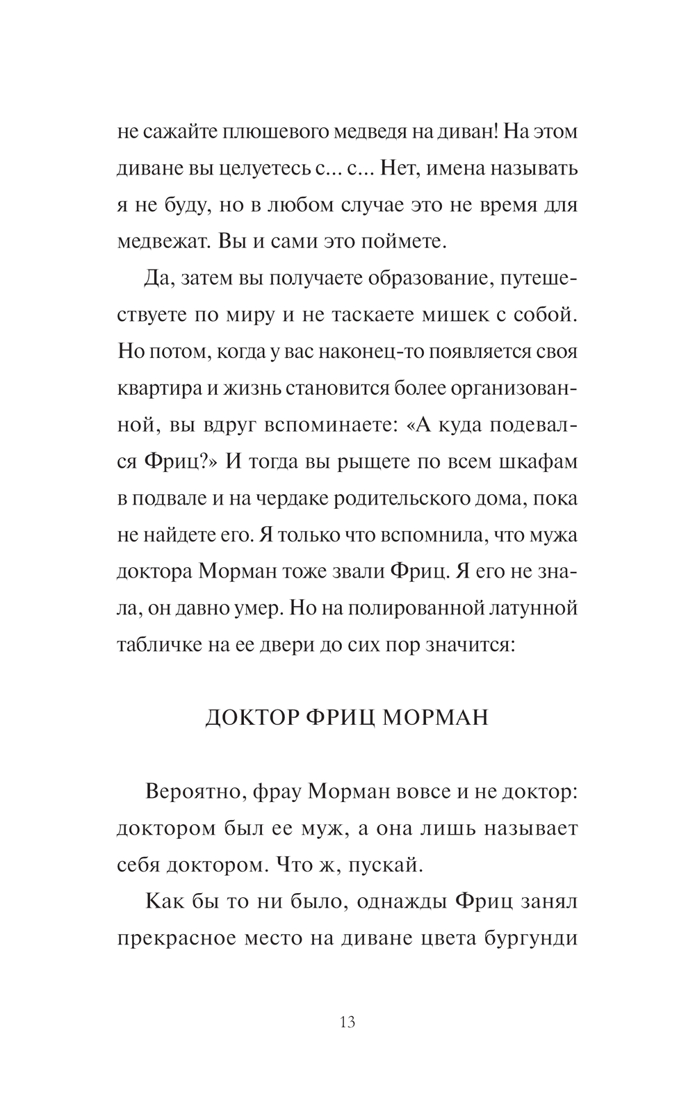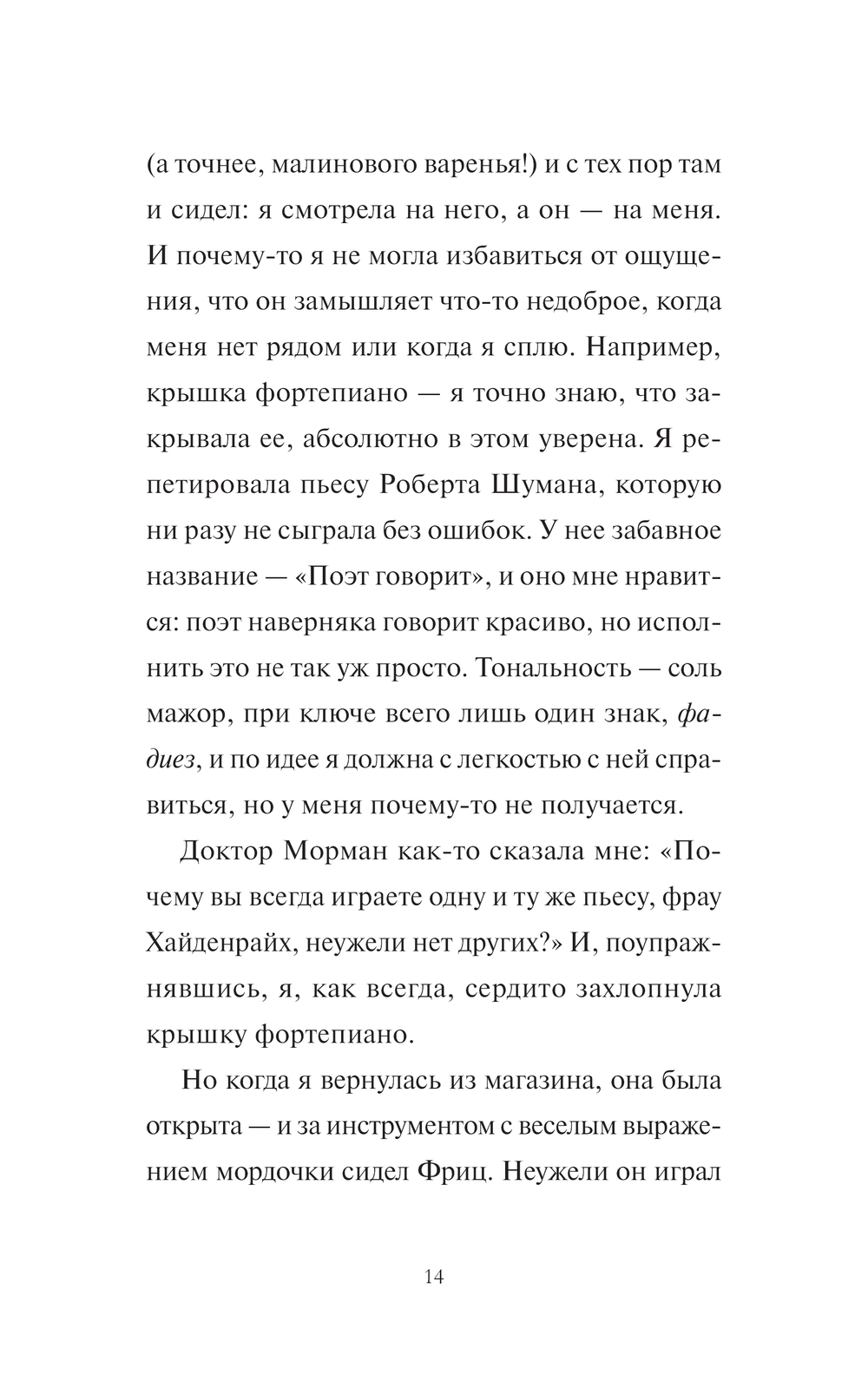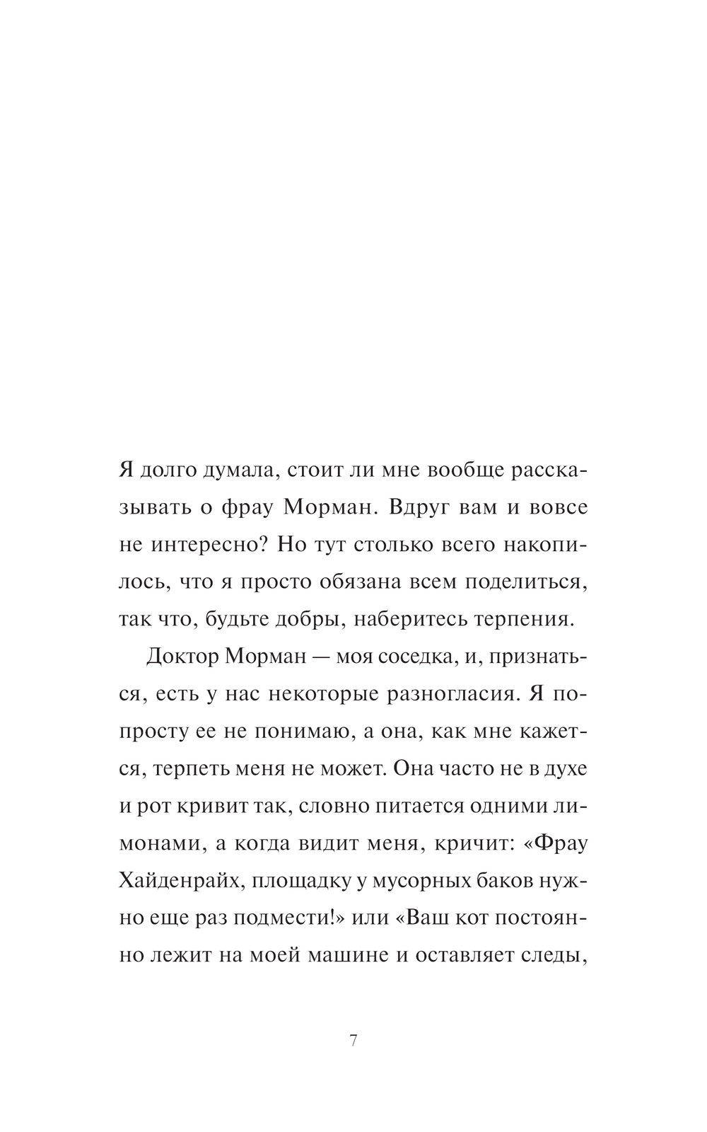 Фрау Морман раздражает все. Соседка, постоянно репетирующая пьесу Шумана, – неужели других произведений нет? Ее гости, что слишком громко смеются в среду после обеда (лучше шуметь по вторникам!). Деревья на смежном участке, которые – подумать только! – сбрасывают листья именно на ее дорожки.