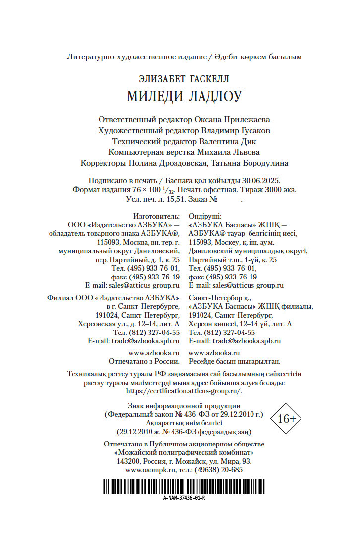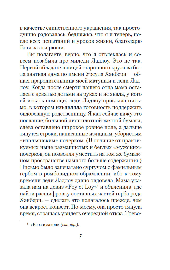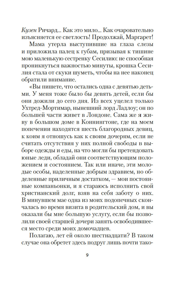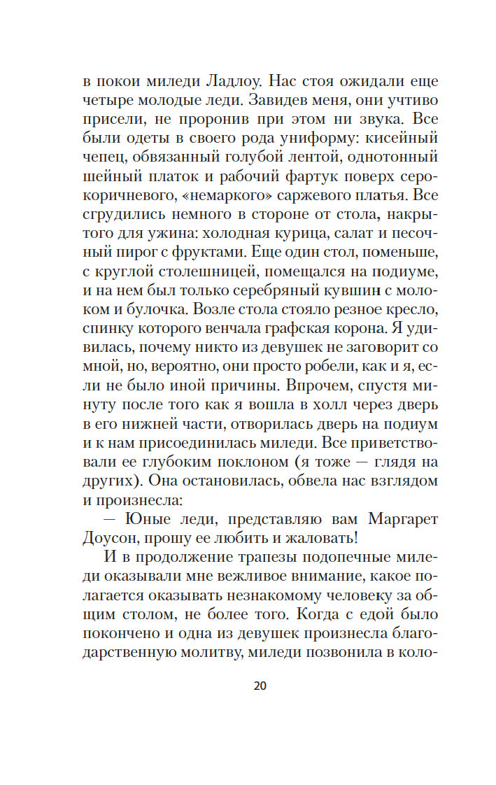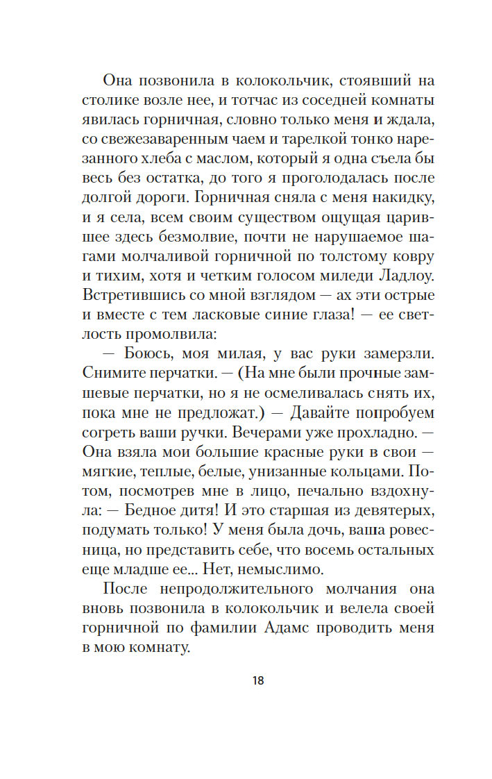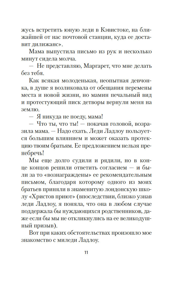 В яркой плеяде прославленных романистов Викторианской эпохи Элизабет Гаскелл занимает самое почетное место. Ее произведения признаны шедеврами мировой классики и переведены на десятки языков, в их числе романы "Крэнфорд", "Север и Юг", "Жены и дочери" и др. Повесть "Миледи Ладлоу" (1858), написанная на пике литературной славы автора, была опубликована в журнале Чарльза Диккенса «Домашнее чтение», как и большинство сочинений Элизабет Гаскелл. Сотканная из множества сюжетных линий, она овеяна очарованием "старой доброй Англии" и пронизана тонким юмором. Действие разворачивается в начале девятнадцатого столетия. Эпоха великих перемен, знаменовавшая промышленный переворот, еще не коснулась старинного поместья леди Ладлоу, где живут и несколько ее молодых воспитанниц. Все здесь дышит традицией и подчинено строгим правилам аристократической морали, но это не может спасти от мук разбитого сердца, и горечи утрат, и крушения надежд, хотя дает силы жить и творить добро.